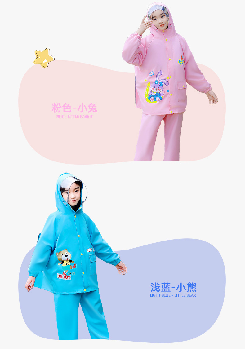 2025년 신형 아동용 우비 및 바지 세트 분리형 남아 유치원 초등학생 통학용 우비 가방 수납 가능