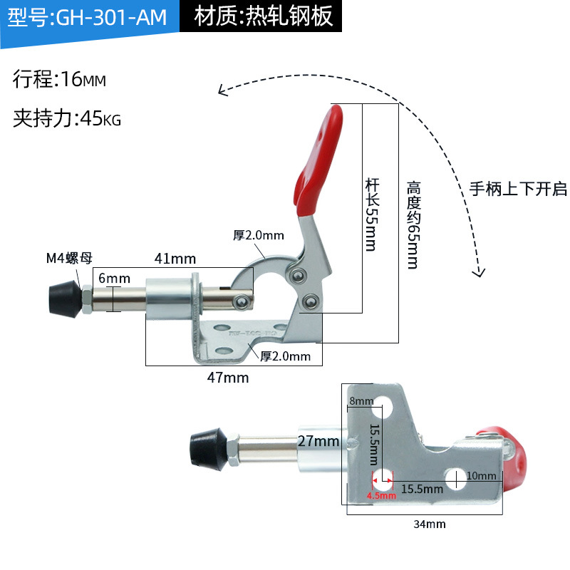 푸시 풀 퀵 고정물 툴링 클램프 노루기 301A 두꺼운 정밀 주조베이스 팔꿈치 클램프 바이스 목공 후커