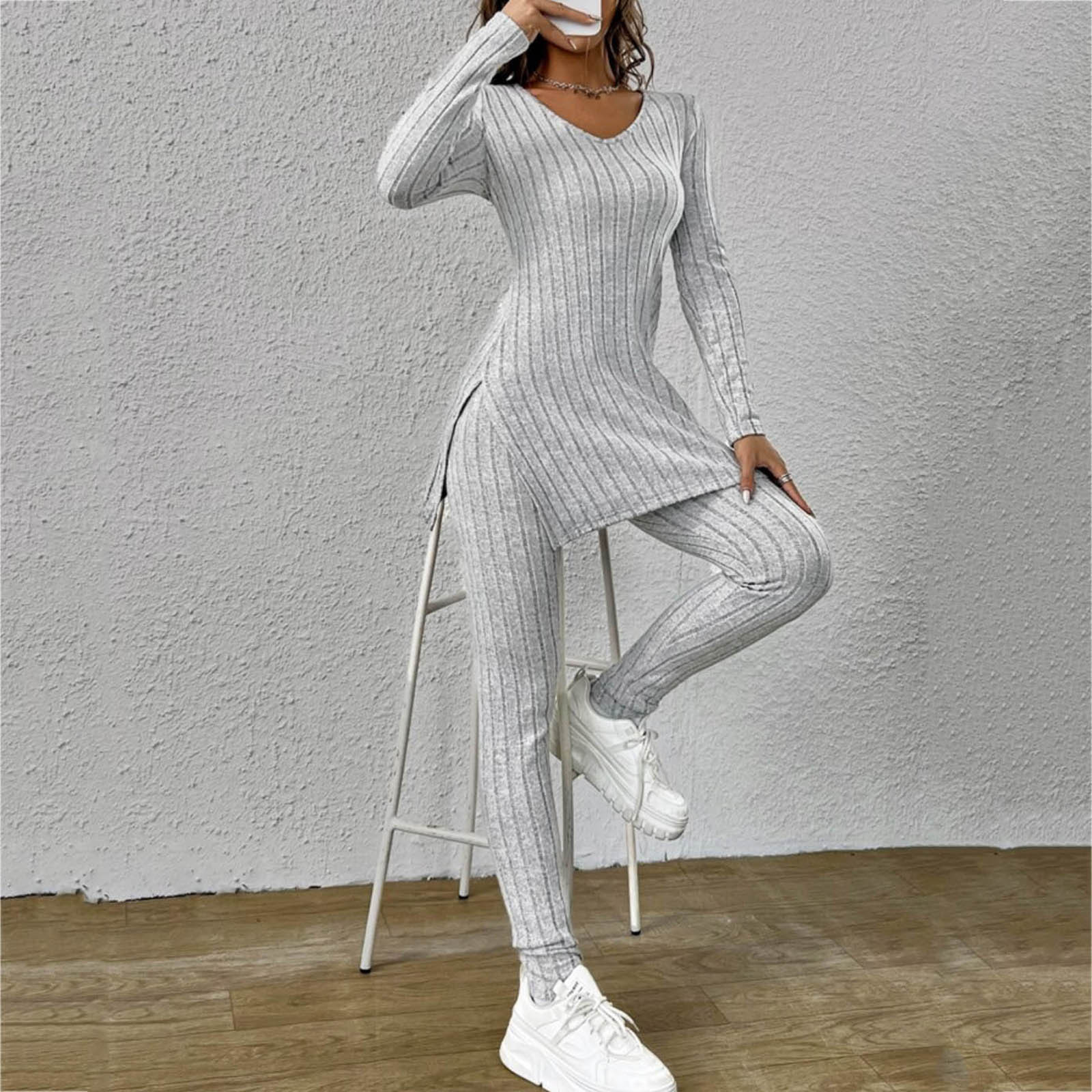 2023 유럽과 미국 크로스 보더 여성의 단색 섹시 캐주얼 슬림 새로운 패션 여성 기질 세트 공장 콘센트