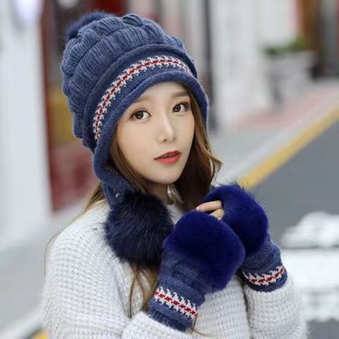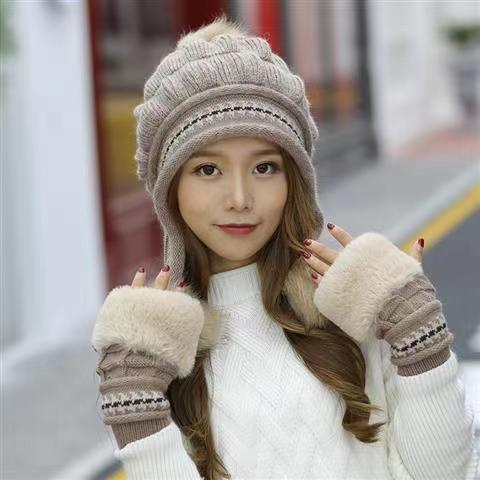 여자의 겨울 모든 일치 패션 따뜻한 귀 보호 니트 모자 패션 가을과 겨울 기모 두꺼운 겨울 모자 + 장갑스토어 가기