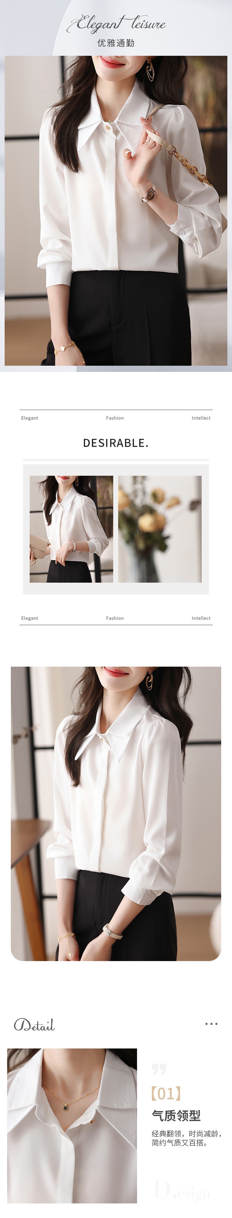 엄선된 비즈니스웨어 OL 화이트 셔츠 2025 봄 여성복 새로운 스타일의 가볍고 성숙한 이너웨어 여성 셔츠 긴팔 상의스토어 가기