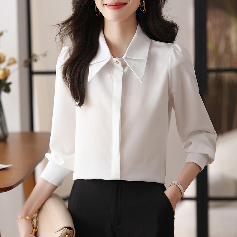 엄선된 비즈니스웨어 OL 화이트 셔츠 2025 봄 여성복 새로운 스타일의 가볍고 성숙한 이너웨어 여성 셔츠 긴팔 상의