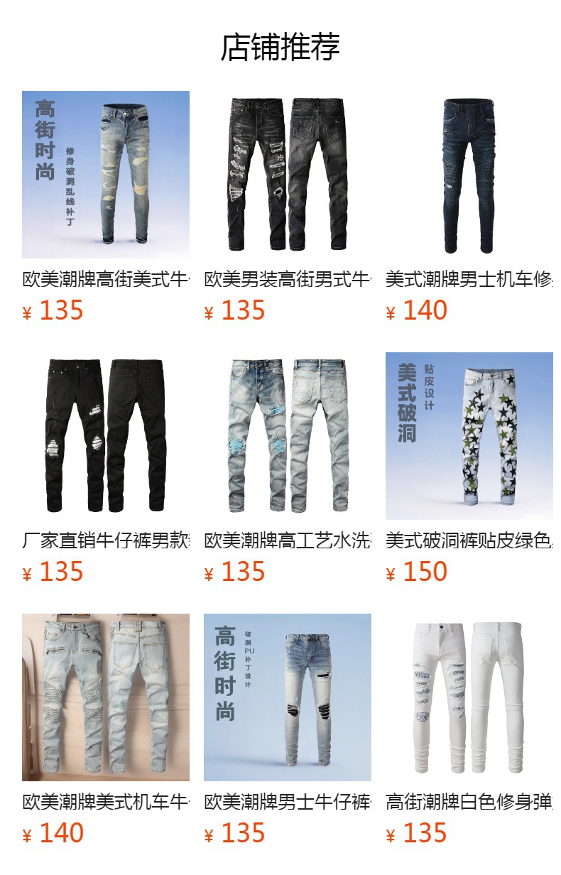 유럽과 미국 남성 청바지 남성 트렌디 하이 스트리트 팬츠 찢어진 패치 가죽 슬림핏 남성 바지 1320스토어 가기