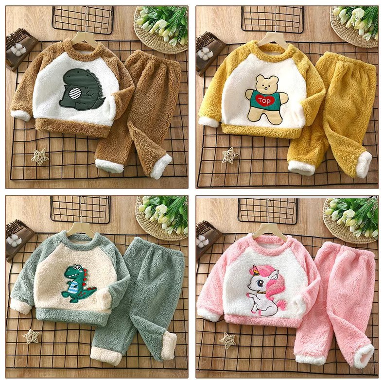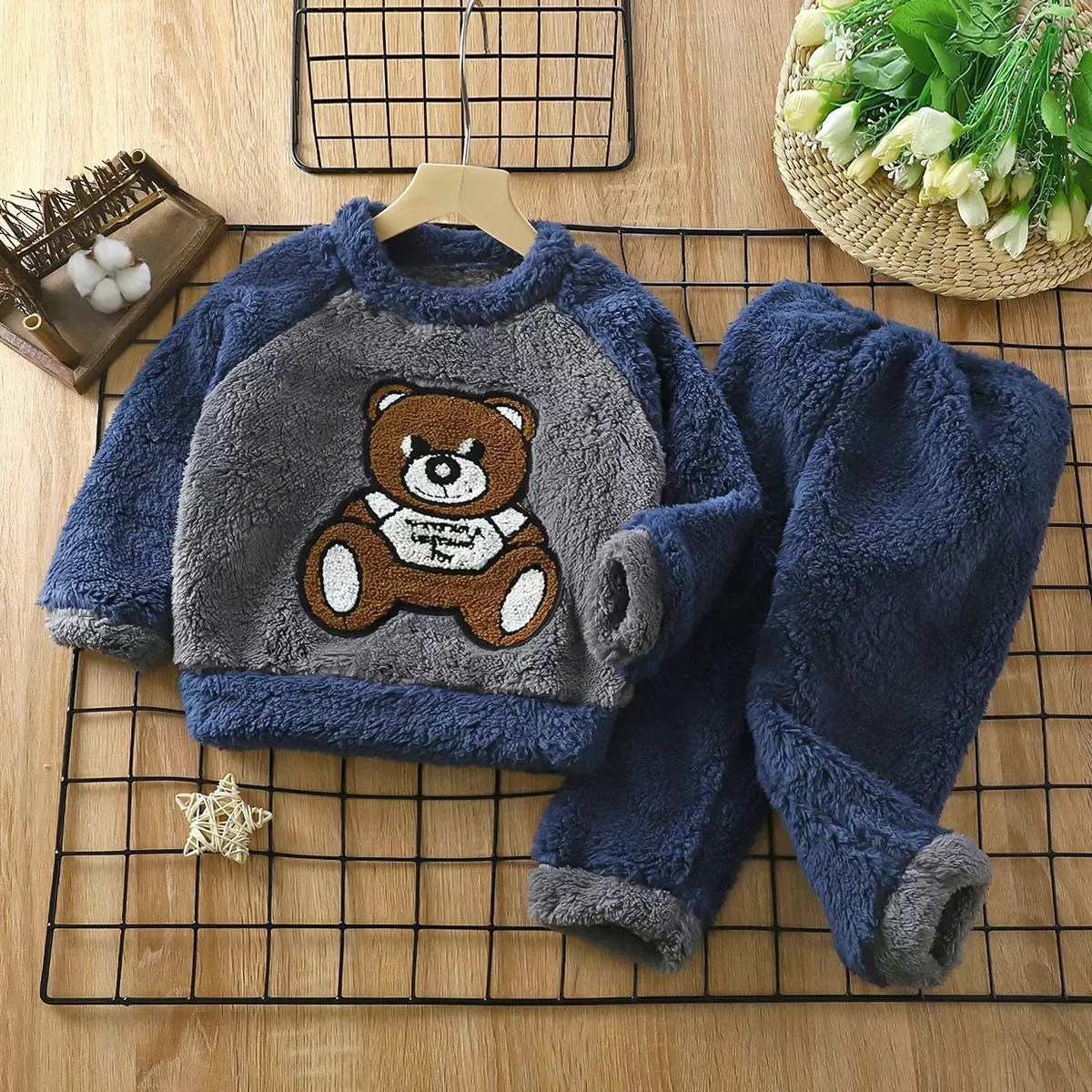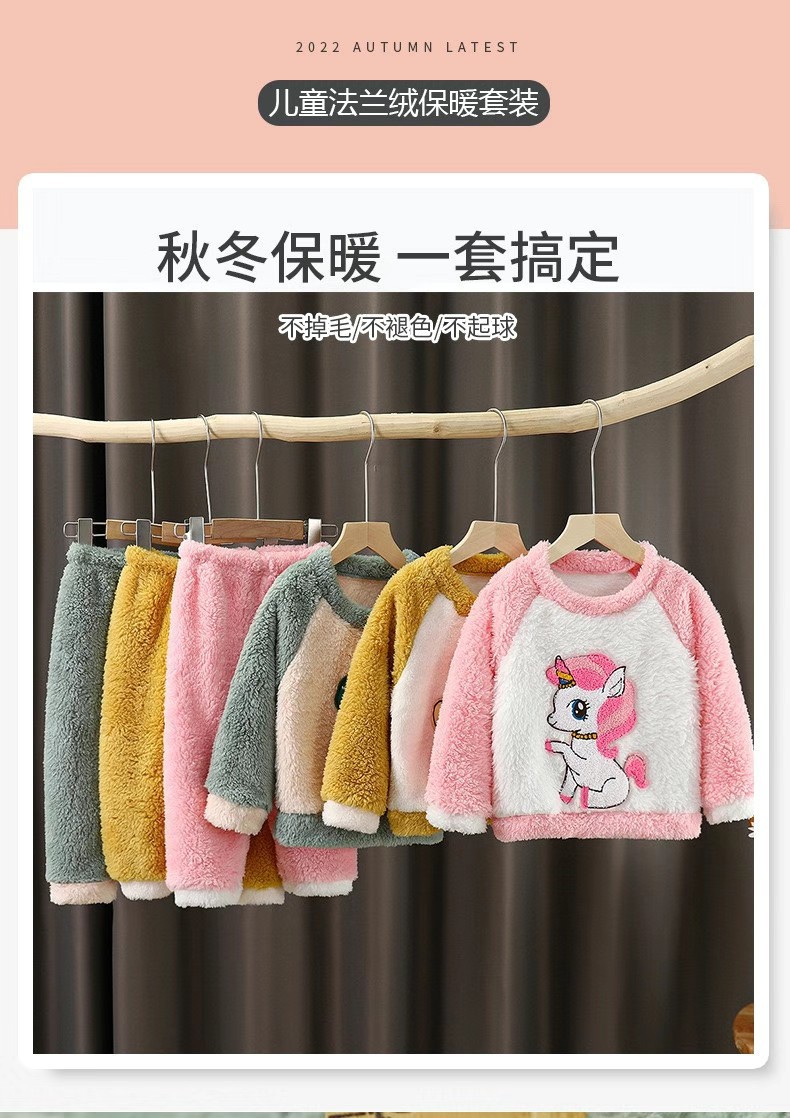 아이들의 새로운 겨울 플란넬 세트 소년과 소녀 기모 따뜻한 가정 의류 어린이 잠옷 어린이 의류스토어 가기