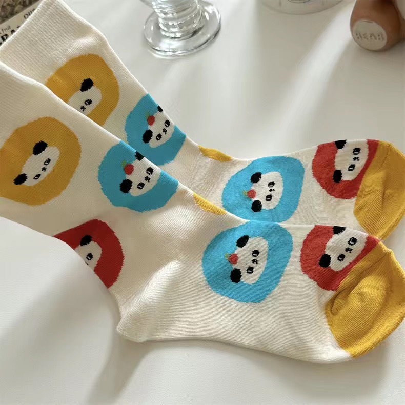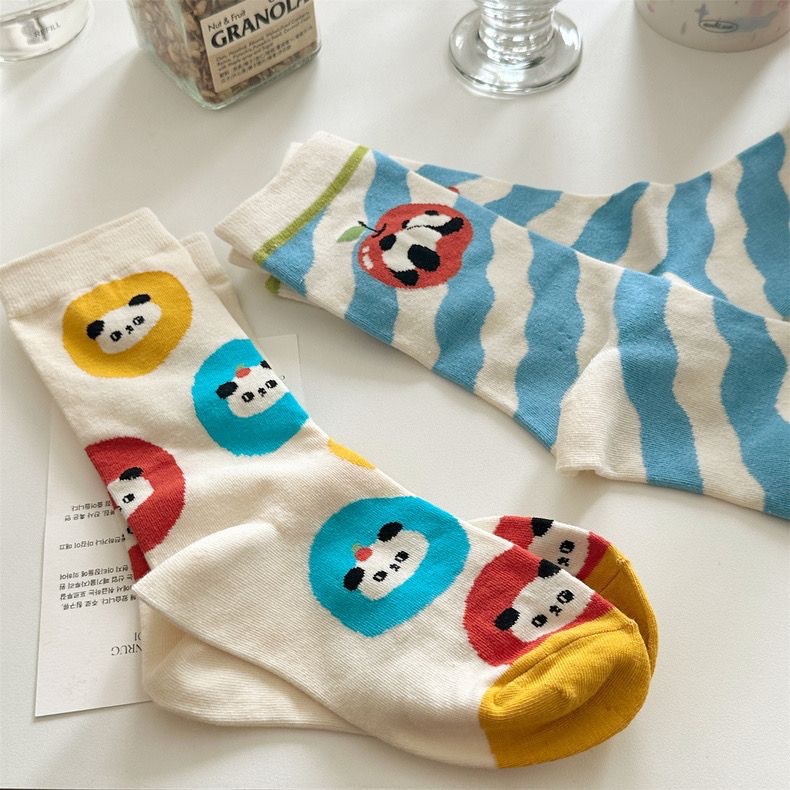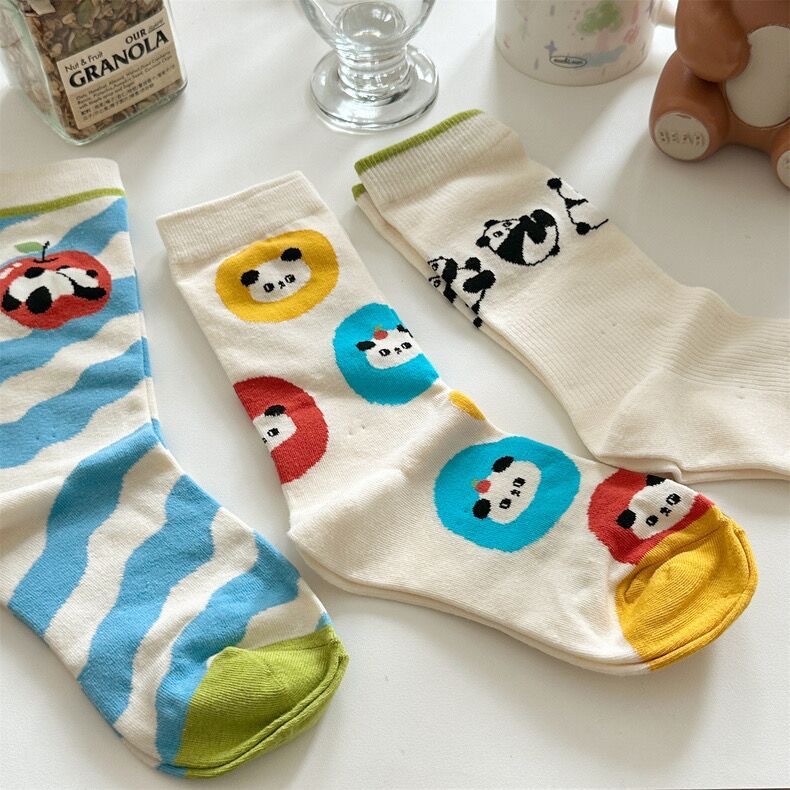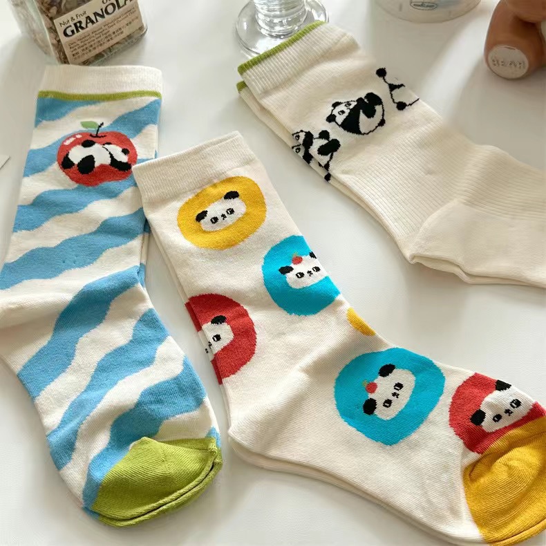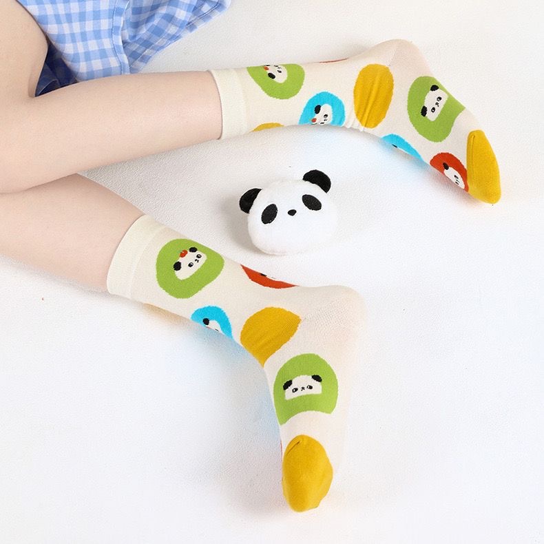 'Panda Paradise' 이른 가을 양말 여자의 귀여운 만화 일러스트 동물 팬더 중간 길이 양말 학업 스타일 면스토어 가기