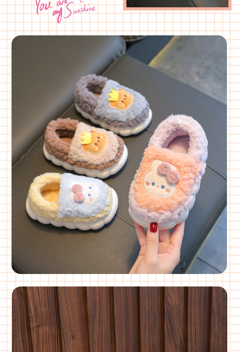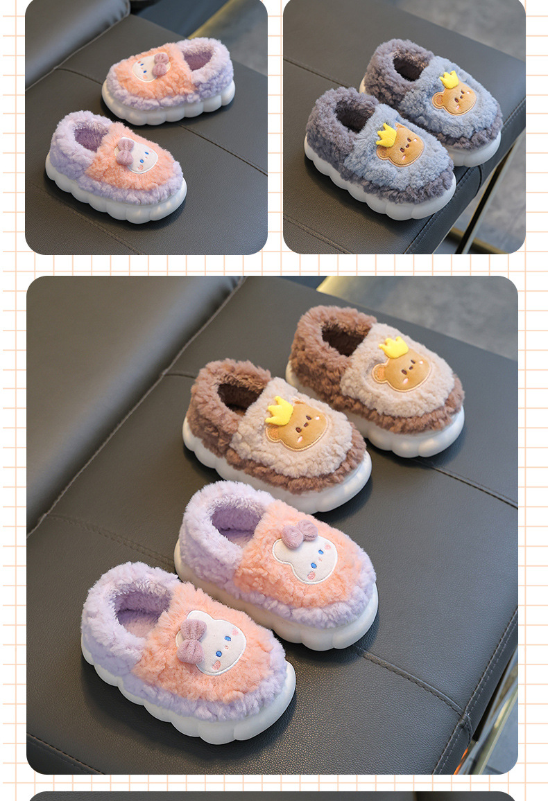 어린이 면화 슬리퍼 겨울 가방 뒤꿈치 소년과 소녀 실내 미끄럼 방지 푹신한 신발 아기 귀여운 만화 가정 부모 신발스토어 가기