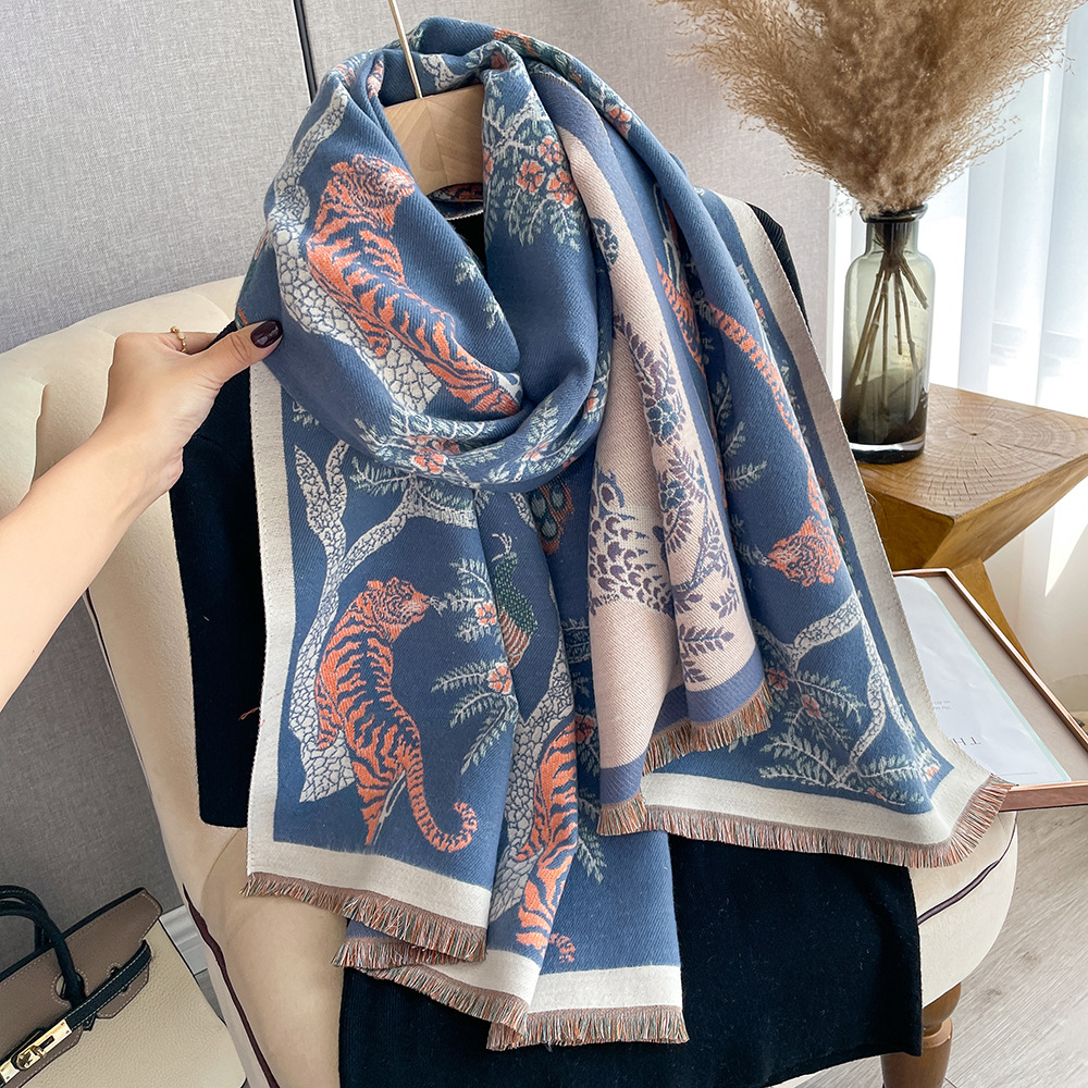 2023 가을과 겨울 두꺼운 자카드 사무실 숄 따뜻한 여성의 꽃 긴 모조 캐시미어 스카프 양면 스카프스토어 가기