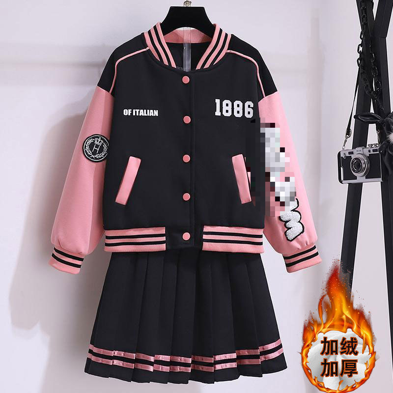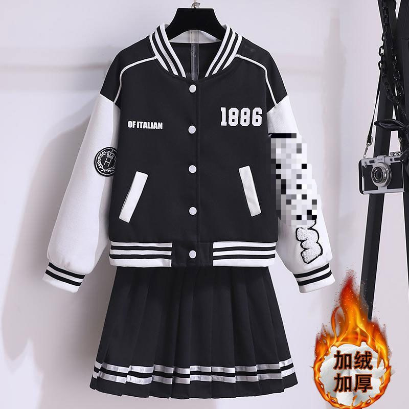 여아 한국 캐주얼 세트 2023 겨울 새로운 세련된 야구 세트 유행 jk 스커트 투피스 세트