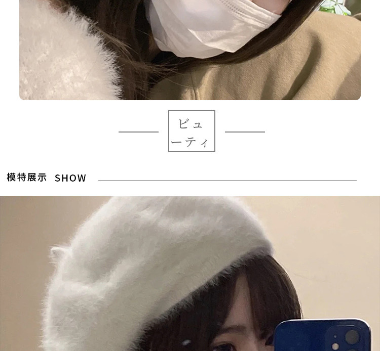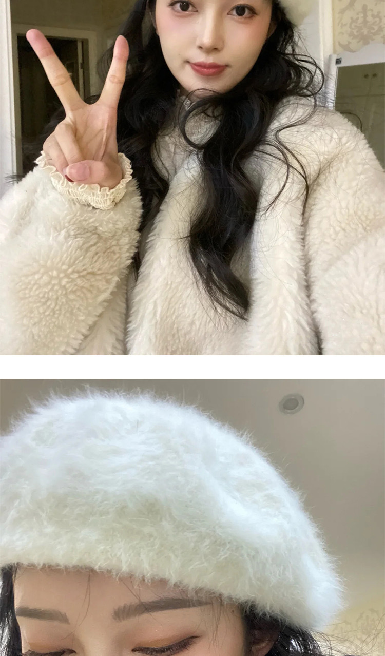 토끼 모피 베레모 큰 머리 둘레 흰색 베레모 여성 2023 새로운 가을과 겨울 모피 구름 모자 모피 플러시 모자스토어 가기