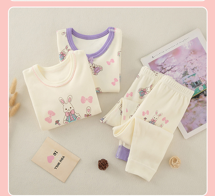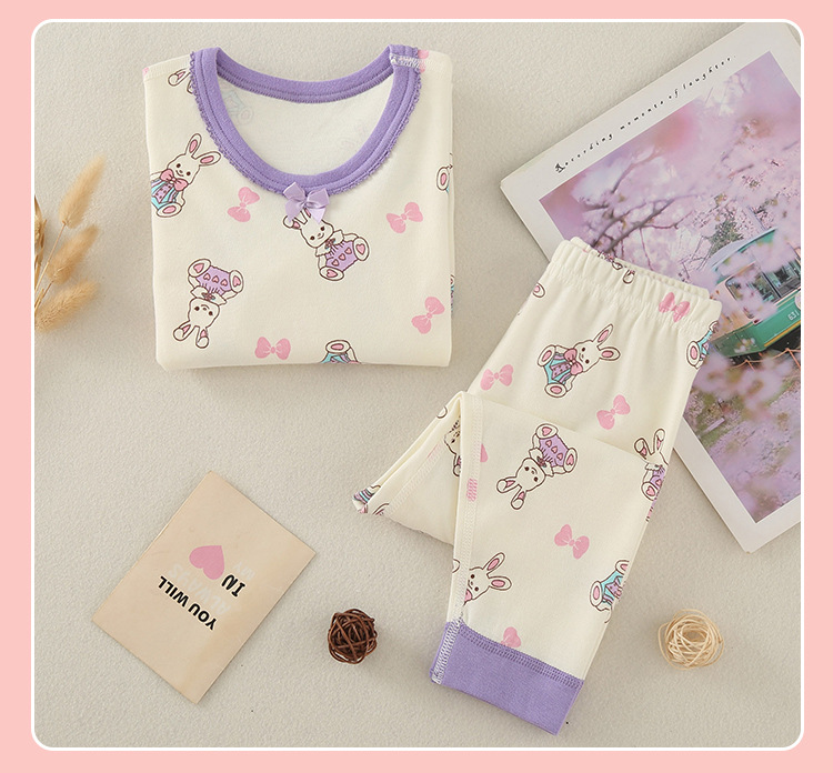 어린이 면 속옷 세트 여아 투피스 세트 어린이 가을과 겨울 따뜻한 옷 아기의 가을 옷 가정 옷 잠옷