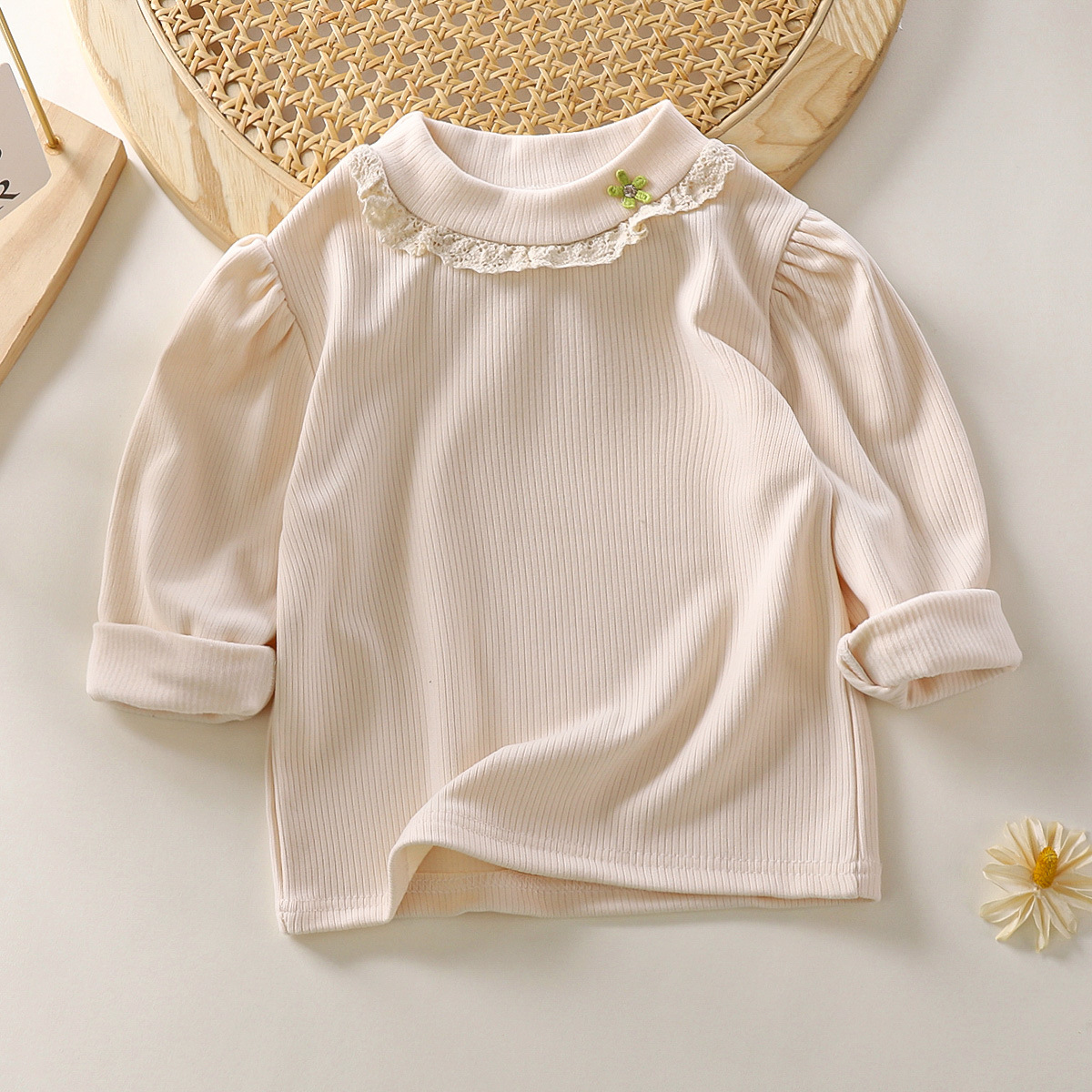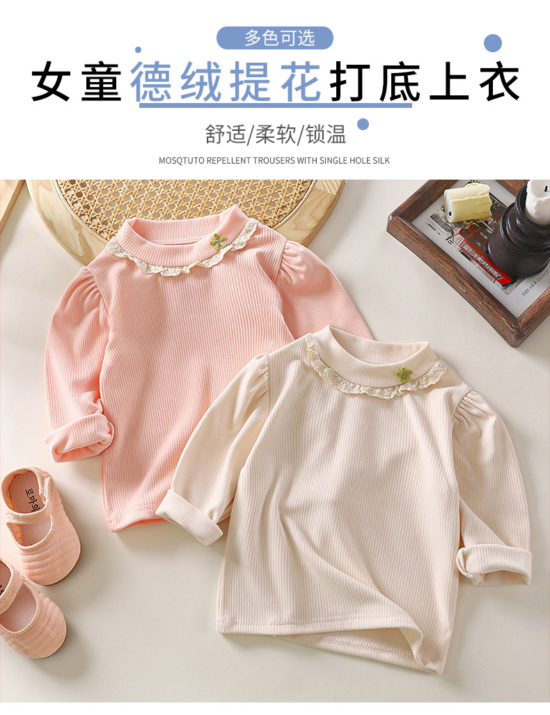한국 스타일 소녀 봄 긴팔 티셔츠 레이스 내부 셔츠 아동 의류 도매 아기 봄 옷스토어 가기