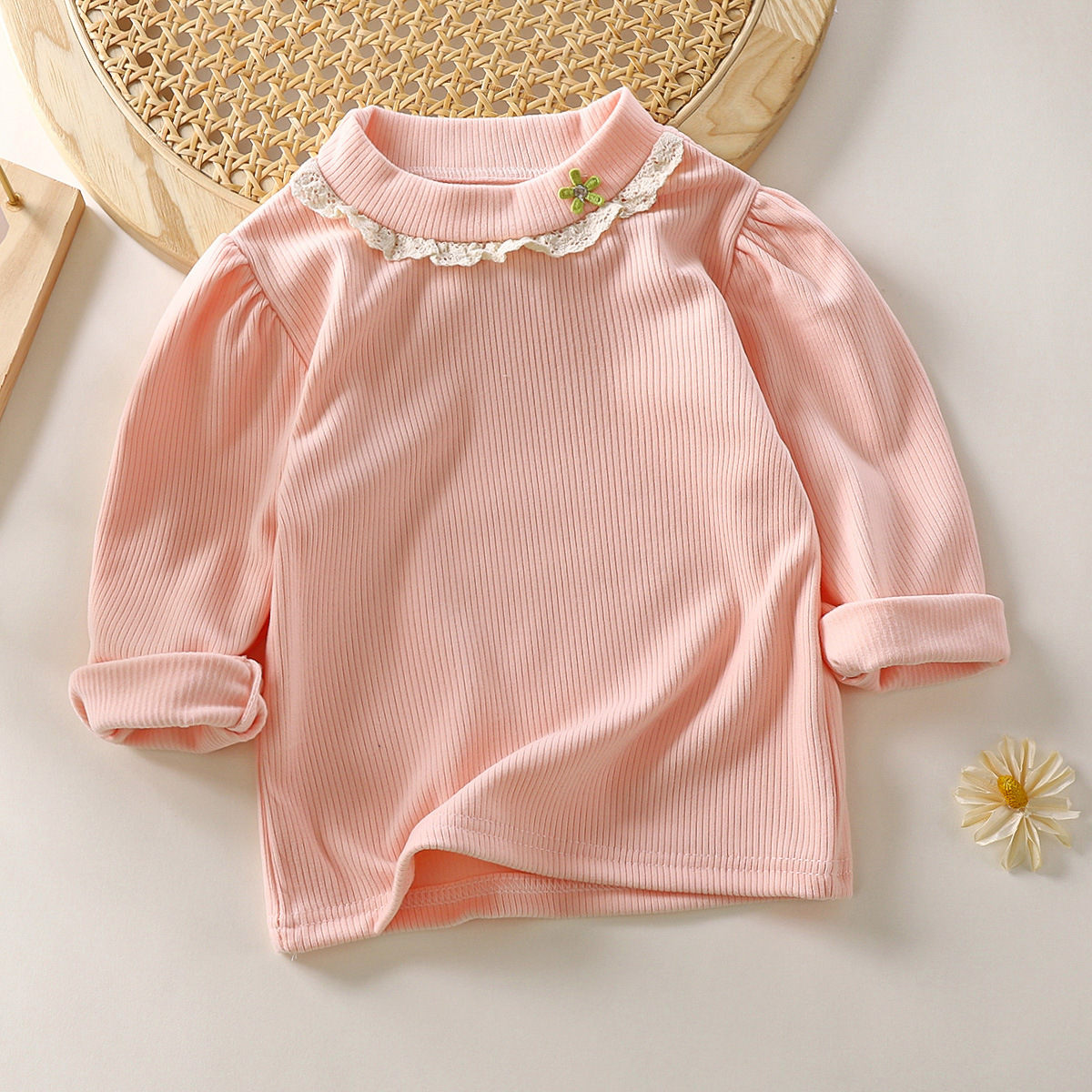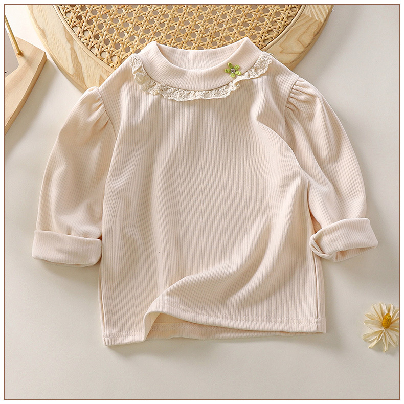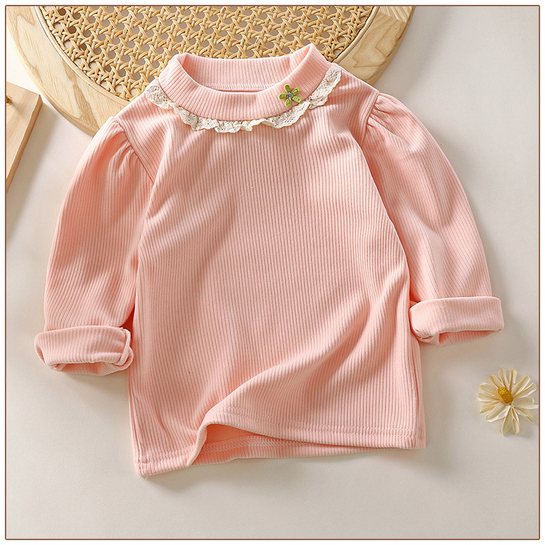 한국 스타일 소녀 봄 긴팔 티셔츠 레이스 내부 셔츠 아동 의류 도매 아기 봄 옷