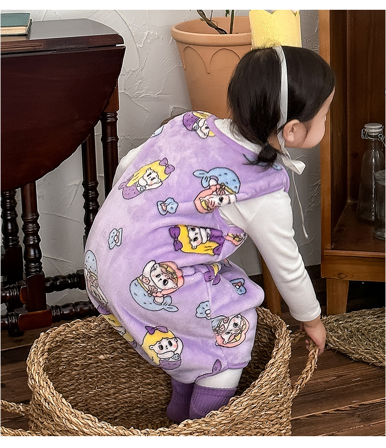 아기 침낭 가을, 겨울 스타일 플러스 벨벳 따뜻한 어린이 수면 방지 킥 이불 원피스 가정 의류 민소매 조끼 스타일 잠옷스토어 가기