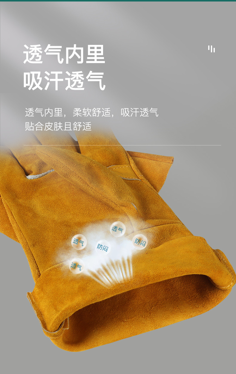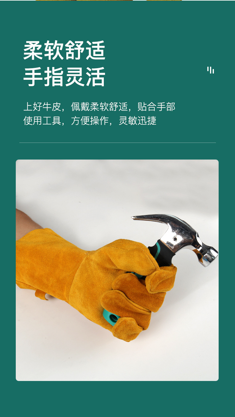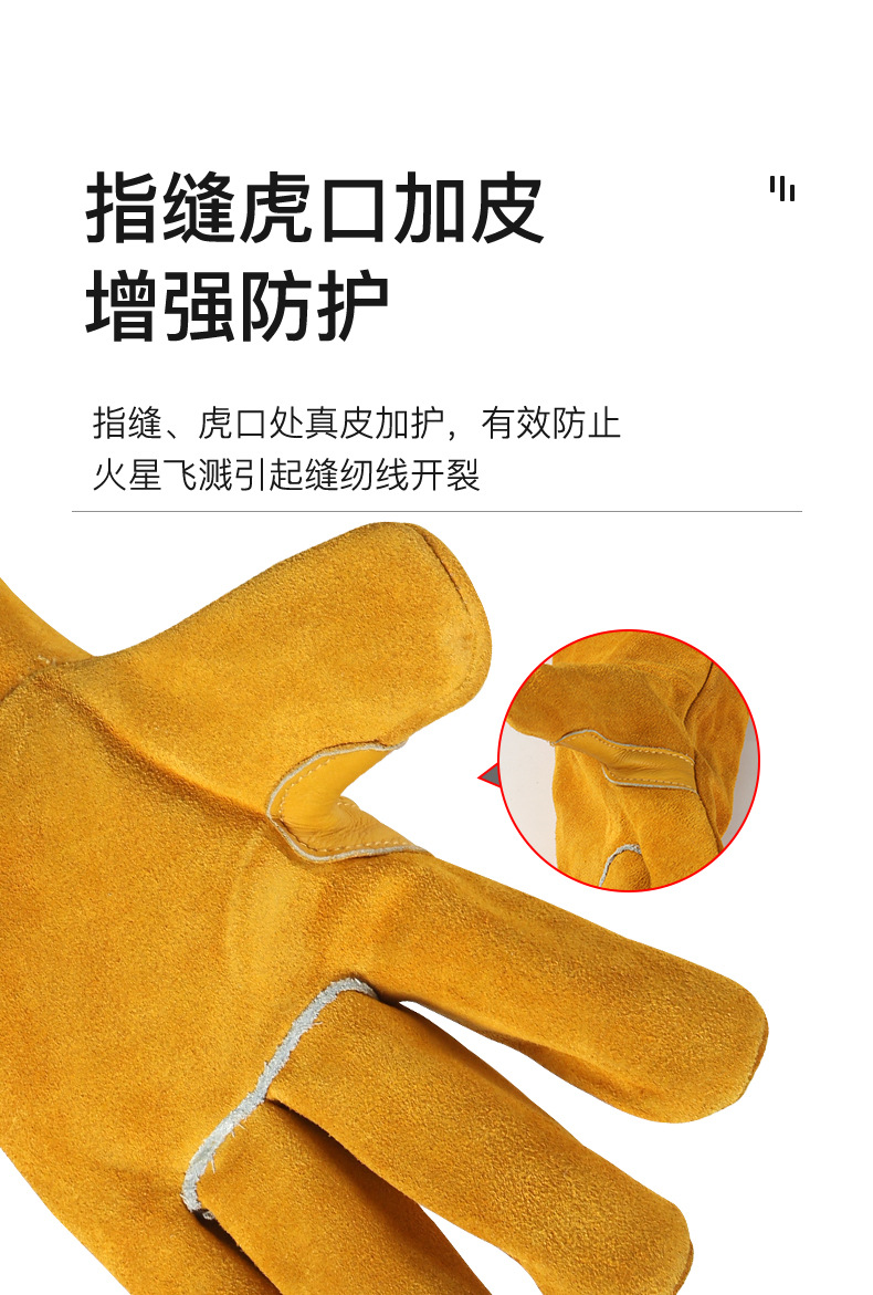 • 노란 천 두 손가락 A 급 황금 소가죽 전기 용접 장갑