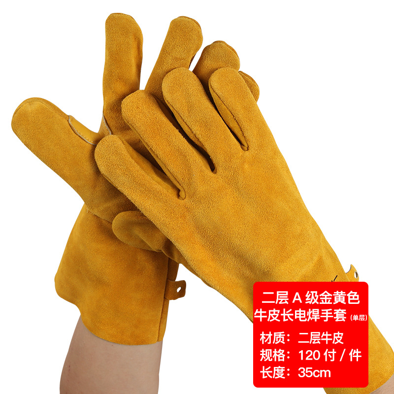 • 2 층 A 급 황금 황색 소가죽 긴 전기 용접 장갑 (단일 층)