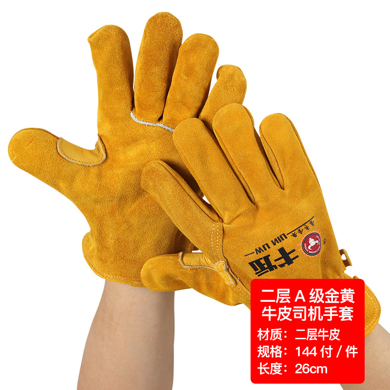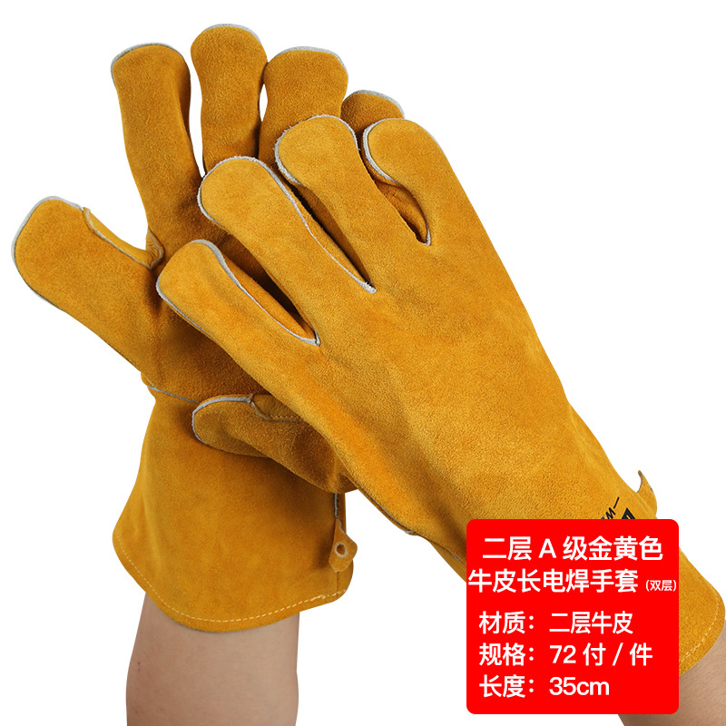 공장 도매 2 층 A 급 소가죽 용접 장갑 두꺼운 내마모성 미끄럼 방지 골드 운전자 용접기 노동 보호 장갑