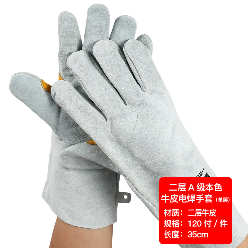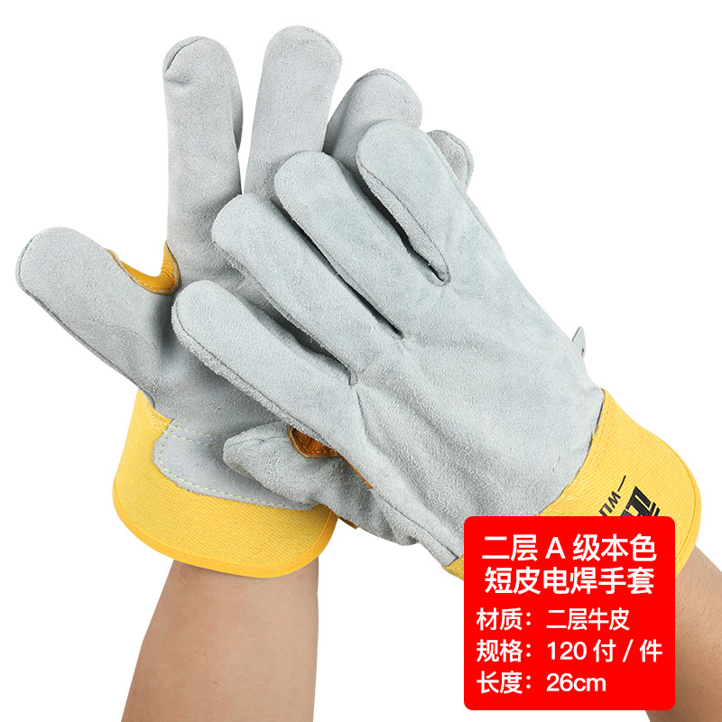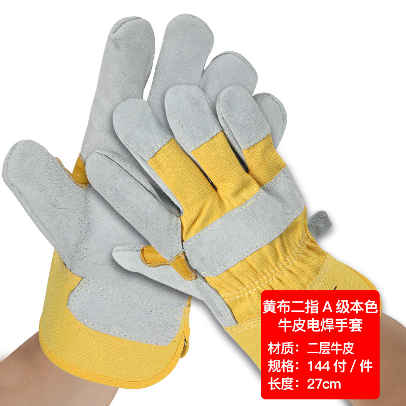 • 노란 천 두 손가락 A 급 자연 색상 소가죽 전기 용접 장갑