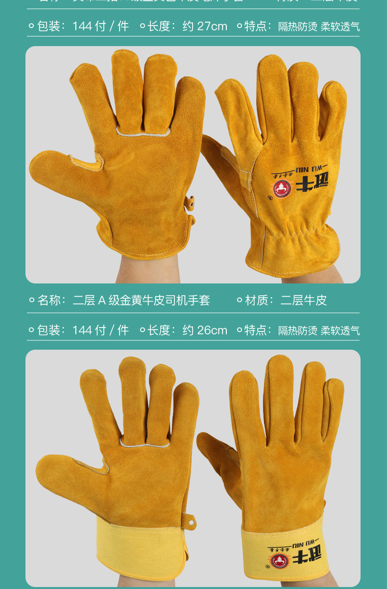 공장 도매 2 층 A 급 소가죽 용접 장갑 두꺼운 내마모성 미끄럼 방지 골드 운전자 용접기 노동 보호 장갑스토어 가기