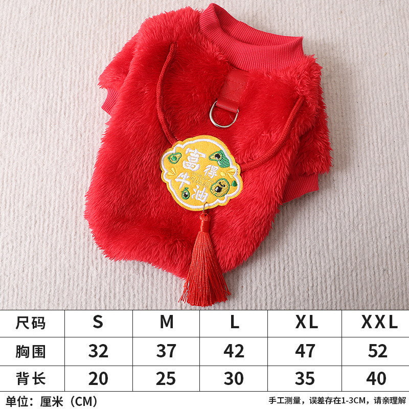 작은 몸 요크셔 개 애완 동물 가을과 겨울 가정 머리 방지 따뜻한 새해 옷 두 다리 크루넥 풀오버스토어 가기