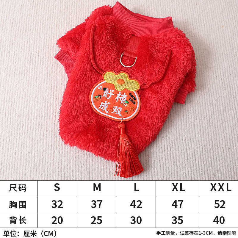 작은 몸 요크셔 개 애완 동물 가을과 겨울 가정 머리 방지 따뜻한 새해 옷 두 다리 크루넥 풀오버