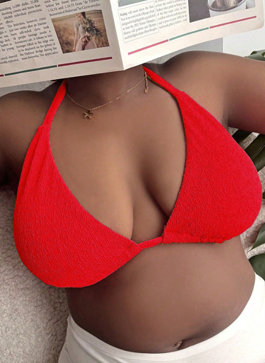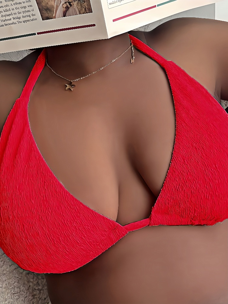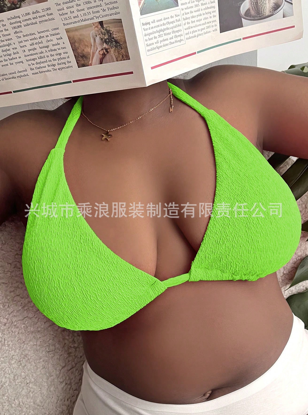 Amazon 2025 새로운 유럽과 미국의 홀터넥 레이스 업 플러스 사이즈 수영복 여성 비키니 섹시한 푸시 업 수영복 탑