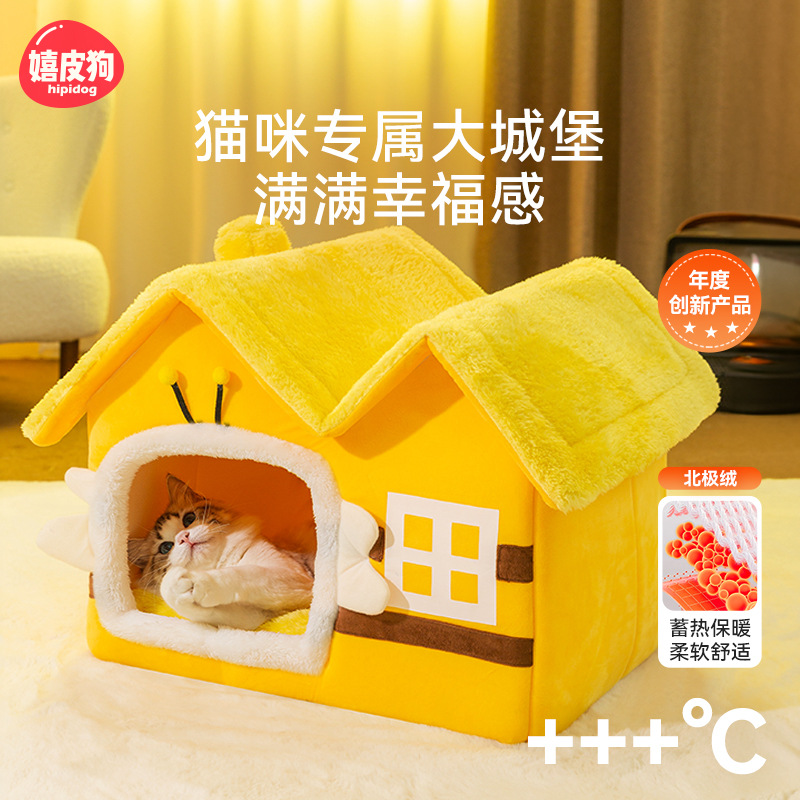 작은 꿀벌 더블 탑 M 형 고양이 둥지 이동식 및 빨 개 집 사계절 유니버설 고양이 둥지 가을과 겨울 개 둥지 애완 동물 둥지