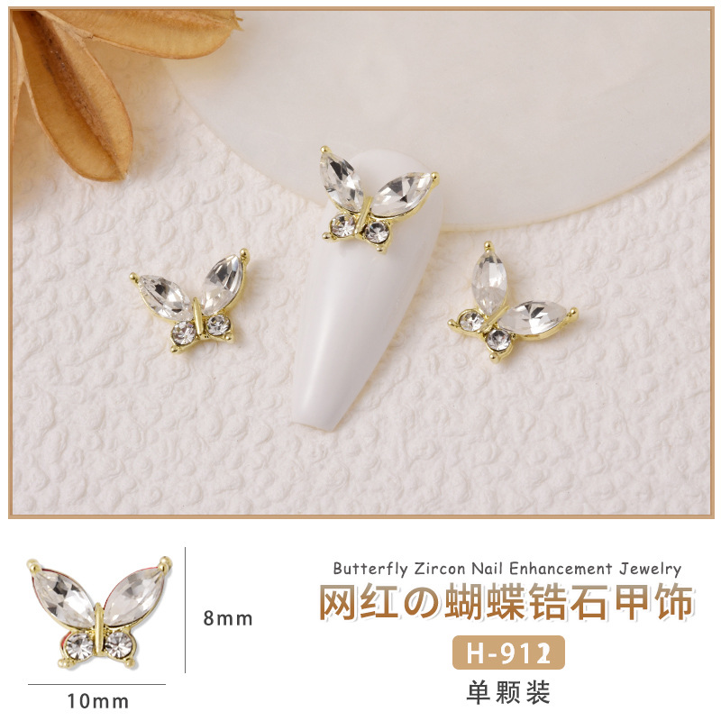 네일 아트 나비 보석 다이아몬드 슈퍼 플래시 새해 레드 크리스탈 나비 완성 된 인터넷 연예인 라이트 럭셔리 모든 매치 골든 네일 액세서리