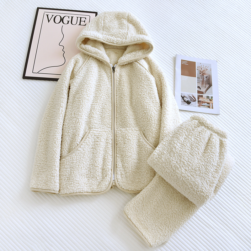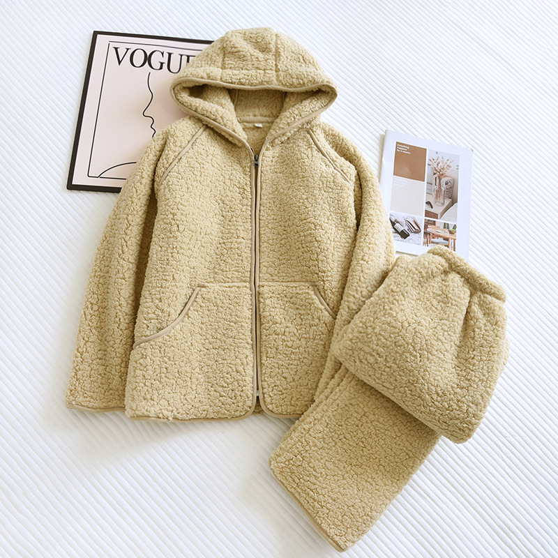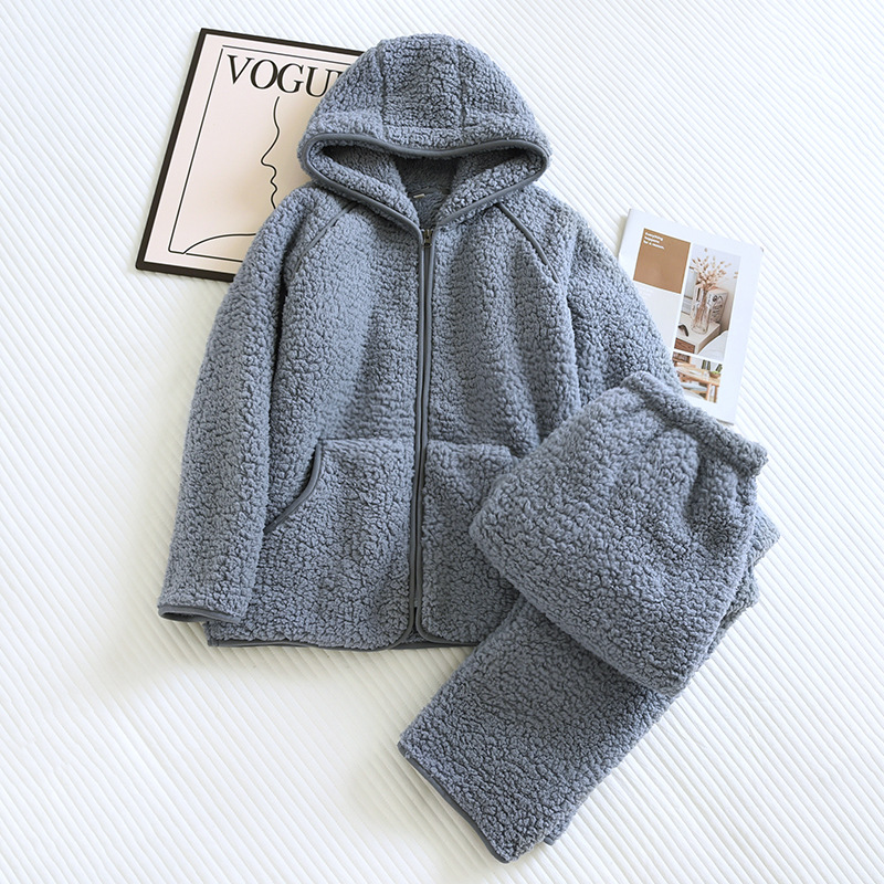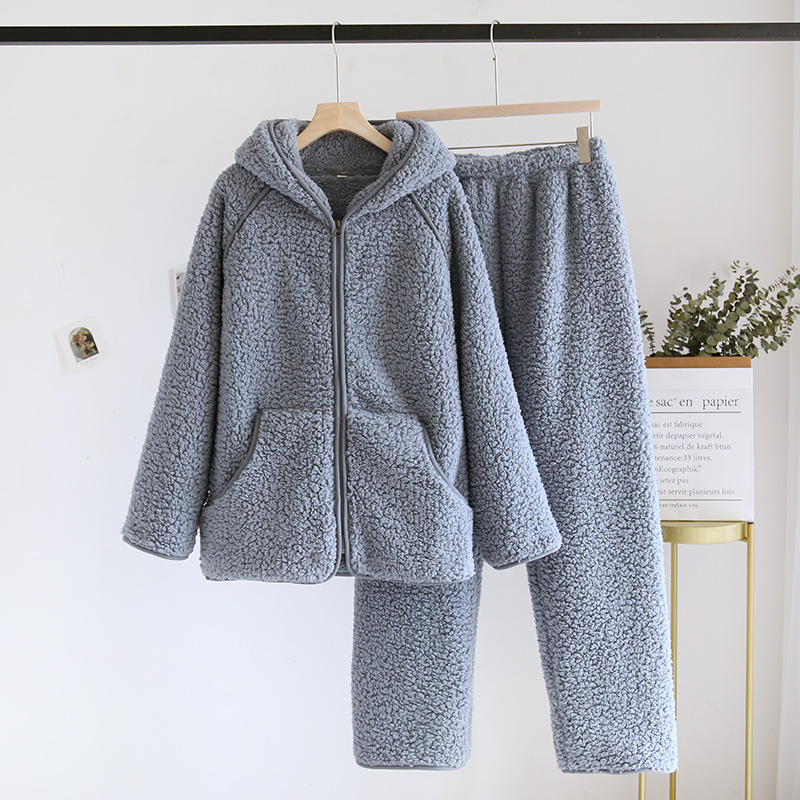 여성과 남성을 위한 새로운 가을 겨울 산호 벨벳 잠옷, 두껍고 따뜻하며 착용 가능한 양털 가정복 세트