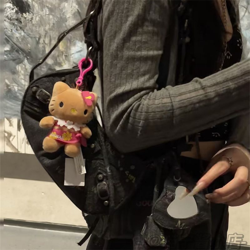 키 체인 블랙 가죽 쥬얼리 귀여운 만화 인형 봉제 고양이 하와이 가방 펜던트 펜던트 크리 에이 티브 미니