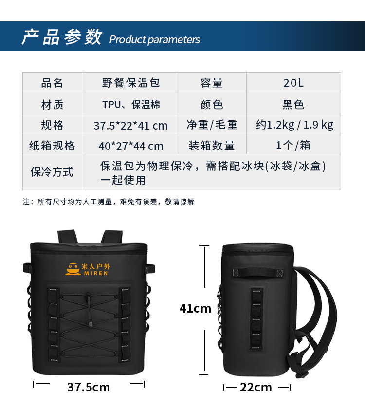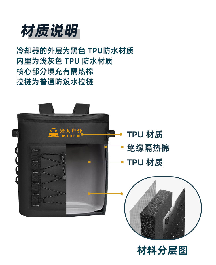 미렌 야외 TPU 방수 단열 배낭 캠핑 피크닉 휴대용 아이스 팩 대용량 내구성 OEM 사용자 정의