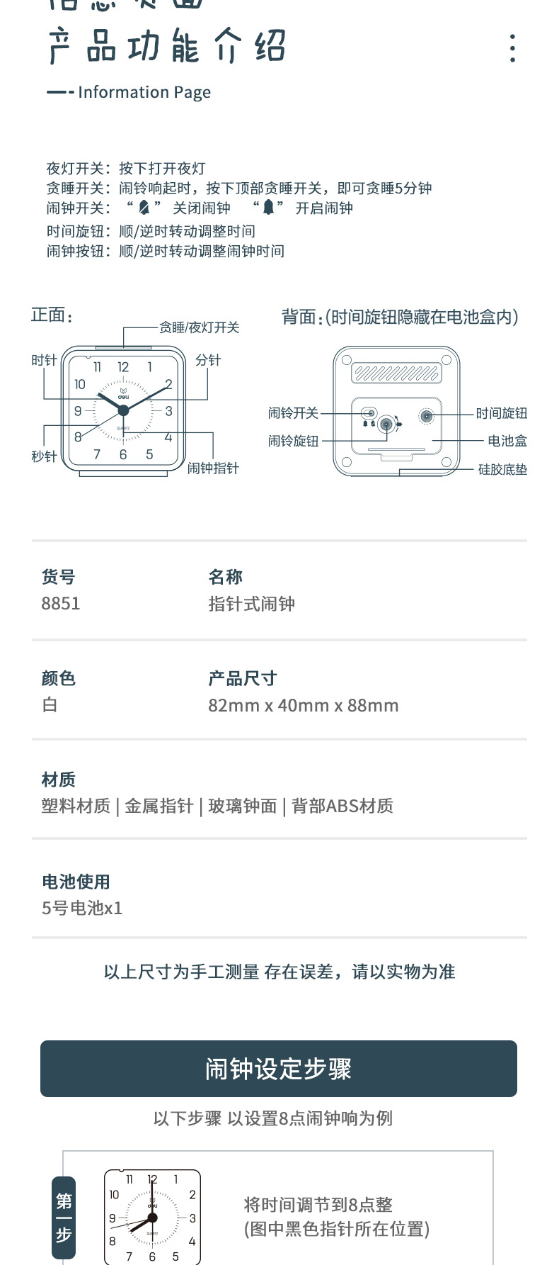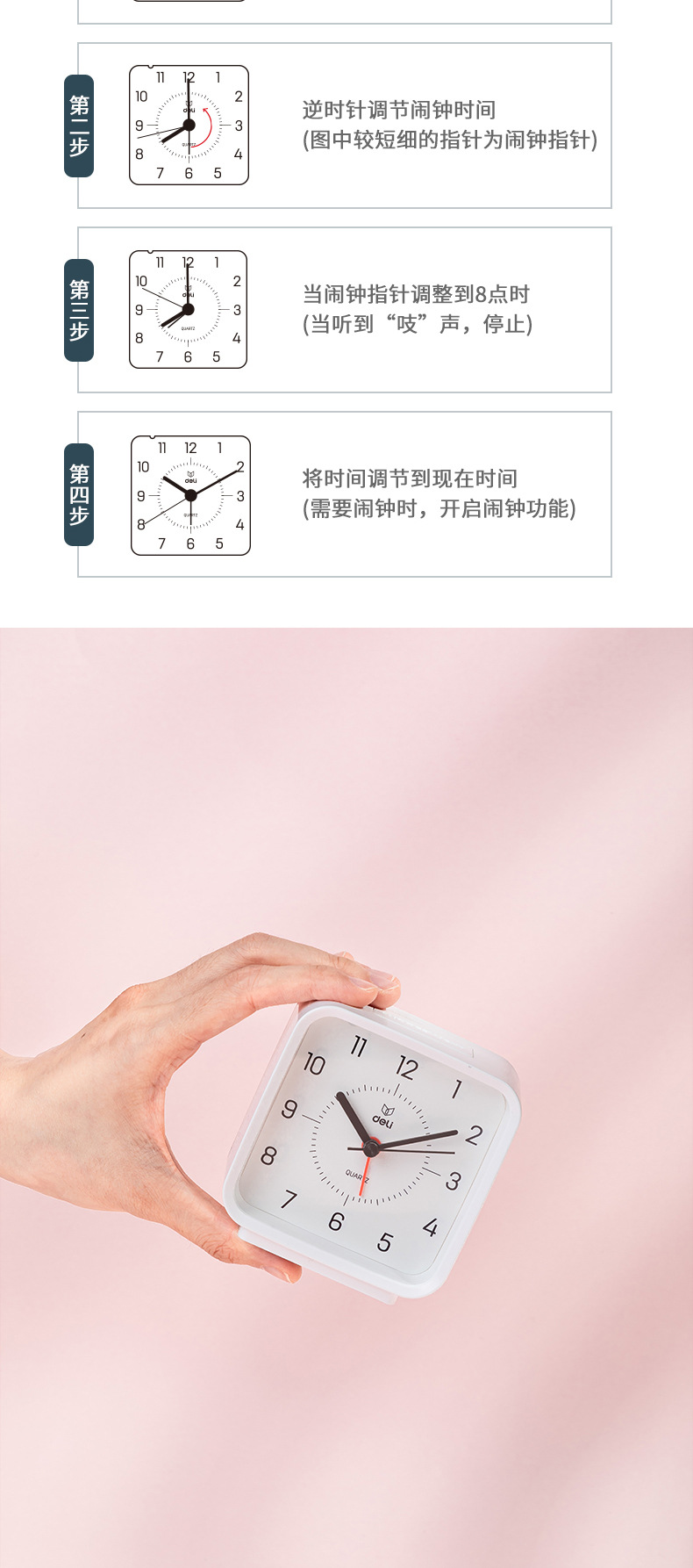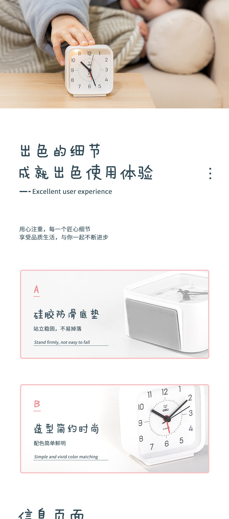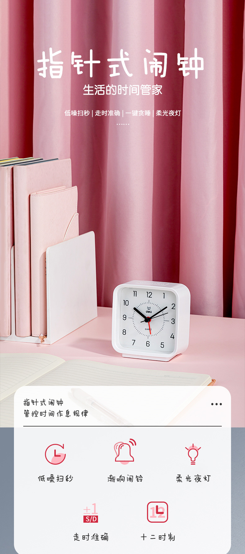 델리 8851 포인터 알람 시계 학생 웨이크 업 아티팩트 사무실 스마트 시계 빛나는 다기능 알람 시계스토어 가기