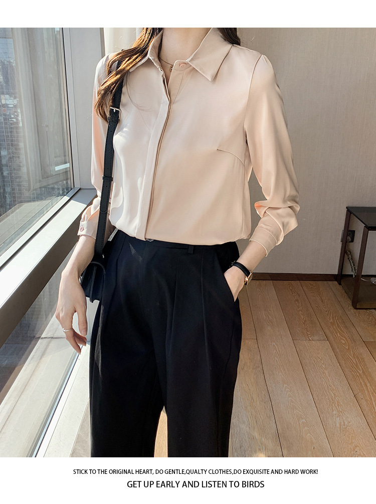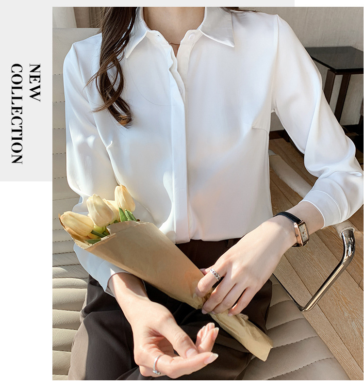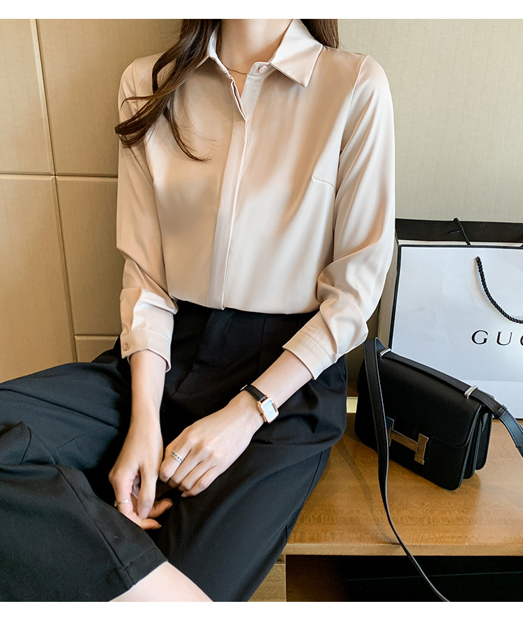 엄선된 봄 신상 새틴 긴팔 셔츠 여성 디자인 틈새 가벼운 성숙한 홍콩 스타일 쉬폰 셔츠 여성 셔츠스토어 가기