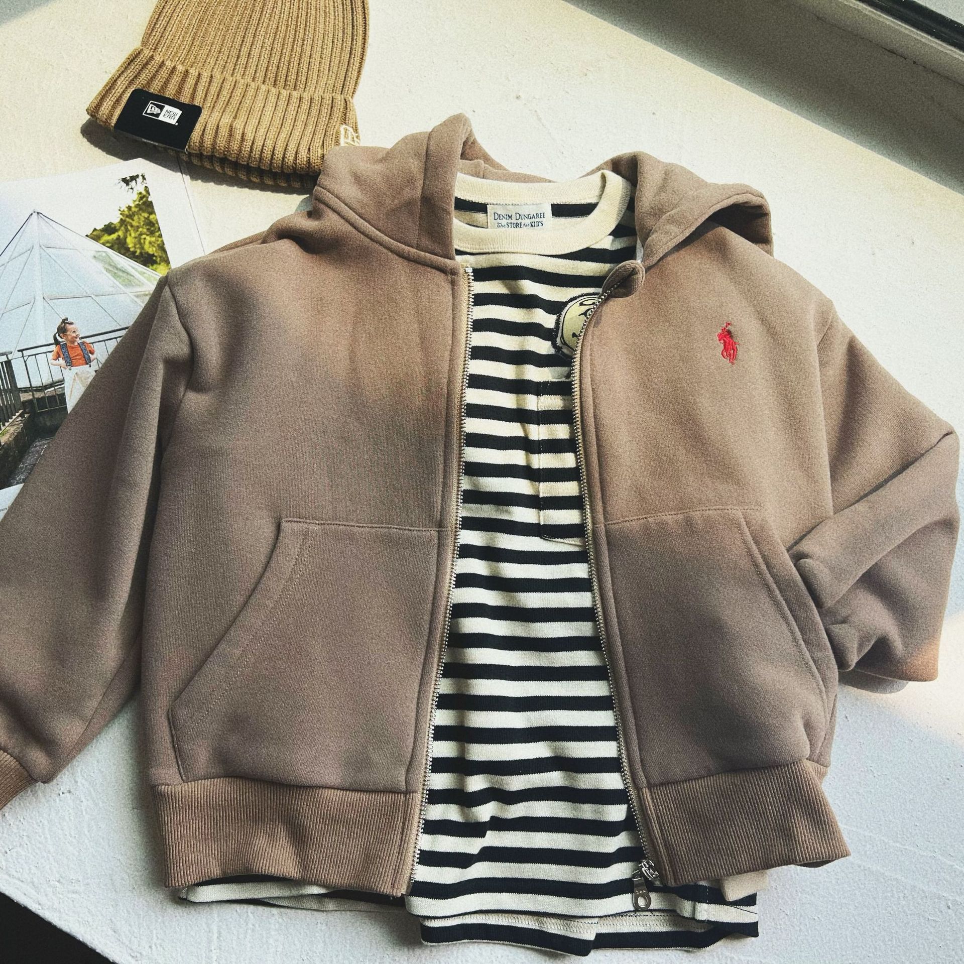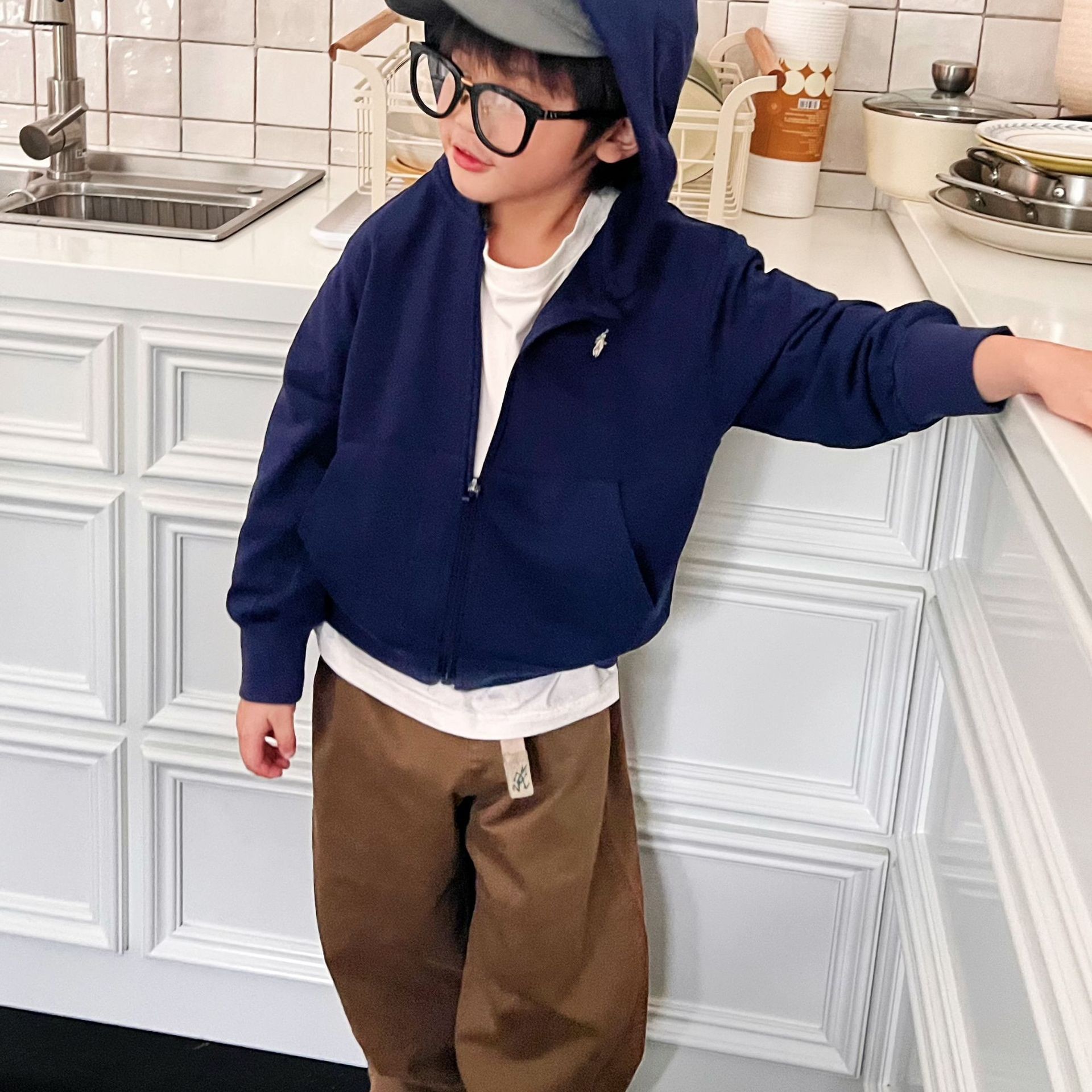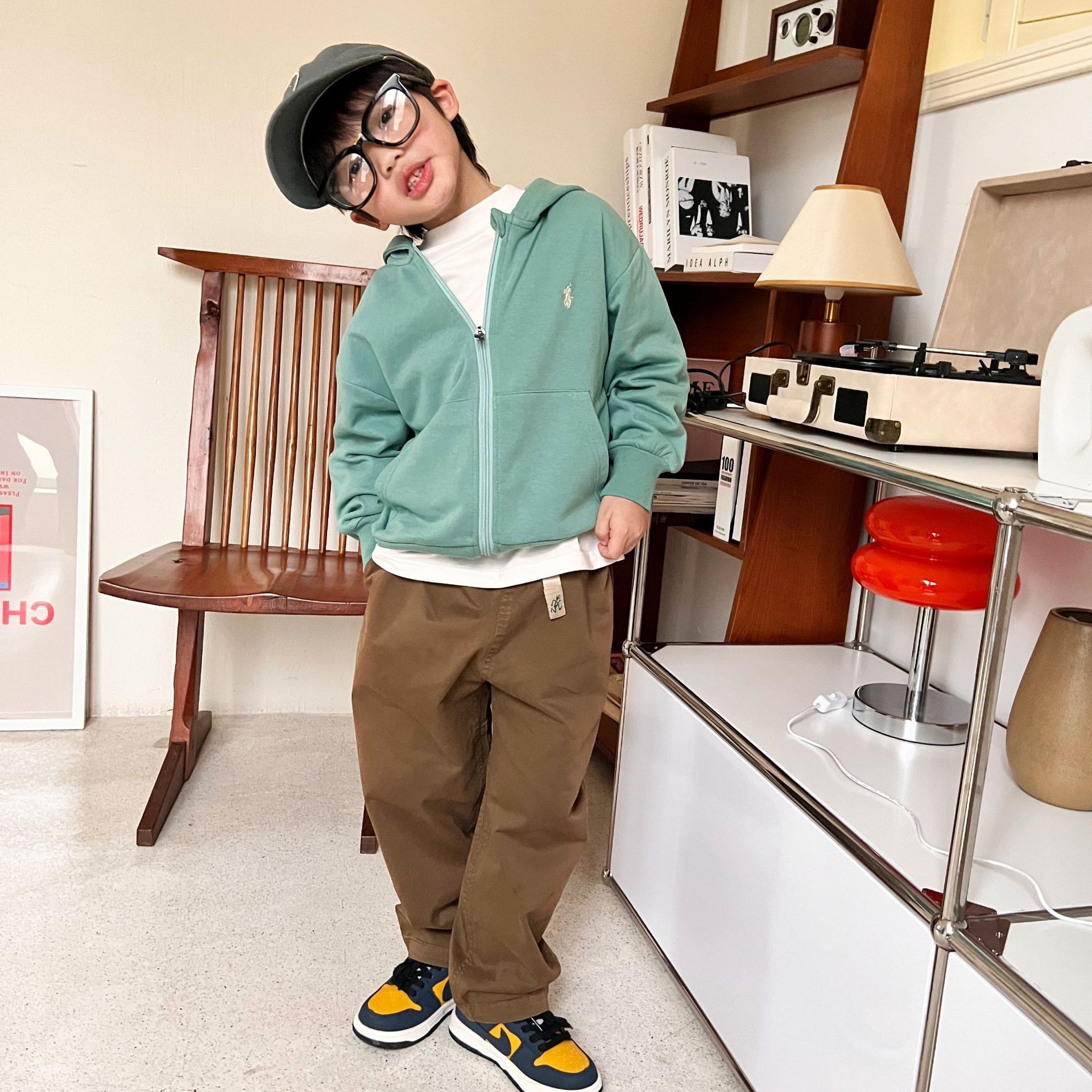 단가 ~ 22 가을 겨울 신작 아동용 미국 복고풍 야구 모자 지퍼 플리스 스웨트 셔츠스토어 가기
