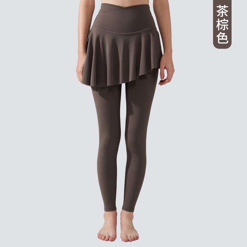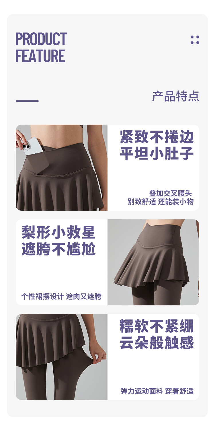 엉덩이 덮는 요가 퀼로트 라이크라 하이웨이스트 런닝 스포츠 피트니스 팬츠 속건성 누드 페이크 투피스 노출 방지 봄 여름 스타일스토어 가기