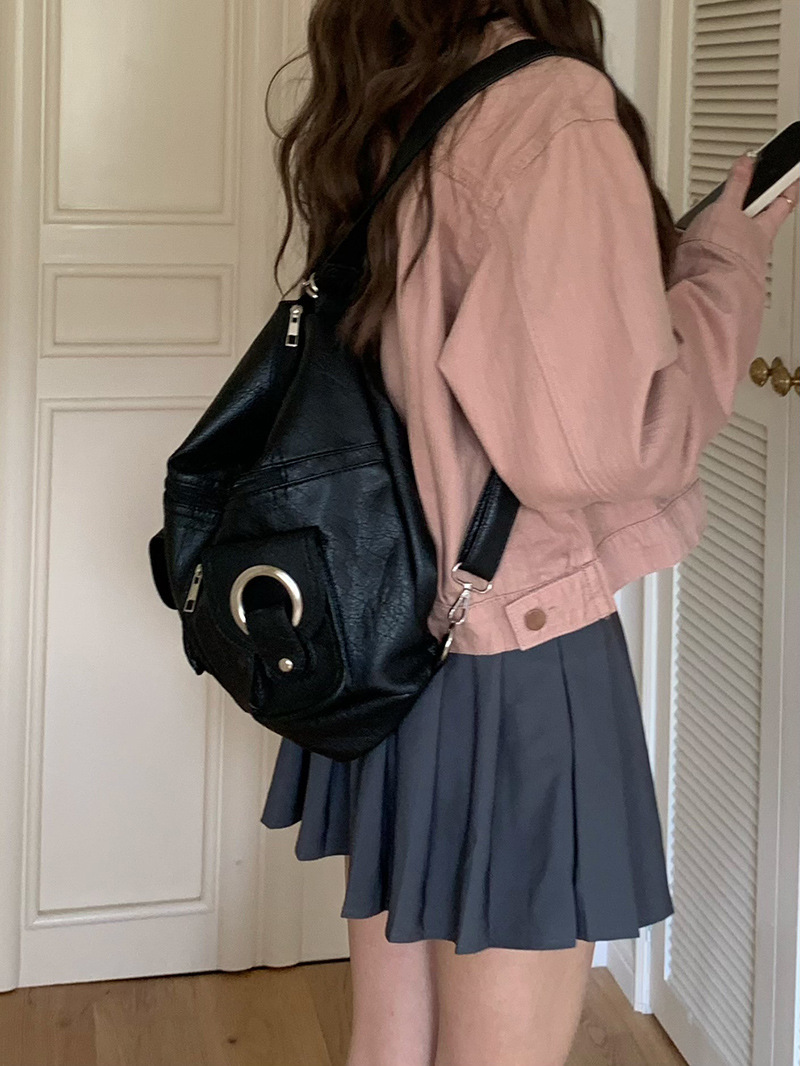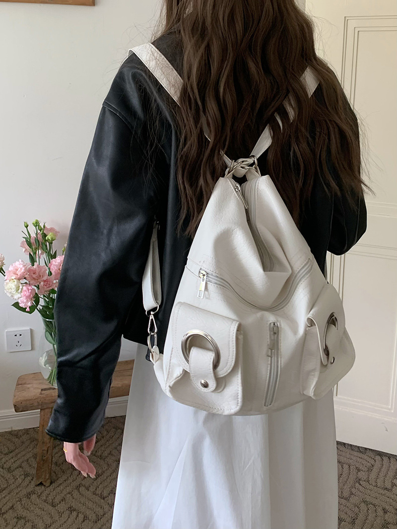 한국식 심플한 개성 만능 유행 지퍼 포켓 PU 가죽 토트백 숄더백 통근 대용량 백팩스토어 가기