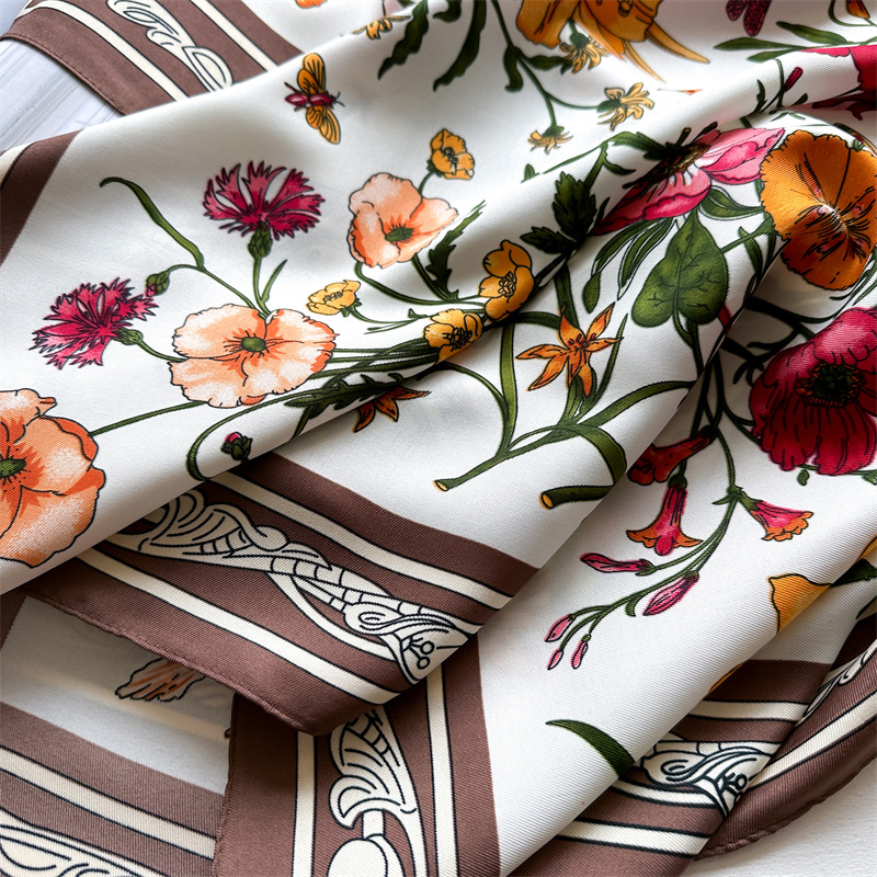튤립 꽃 나비 스카프 목가적 인 스카프 프렌치 프린트 헤드 스카프 장식 숄 가을과 겨울 스퀘어 스카프 새로운