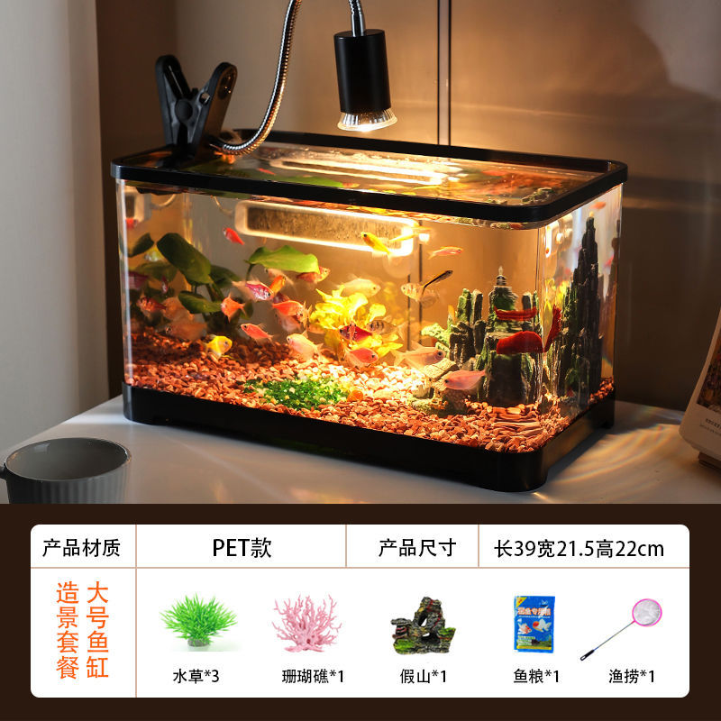 HD 투명 어항 가정용 데스크탑 수족관 생태 풍경 플라스틱 금붕어 탱크 거북이 탱크 슈퍼 화이트 중형 및 소형스토어 가기