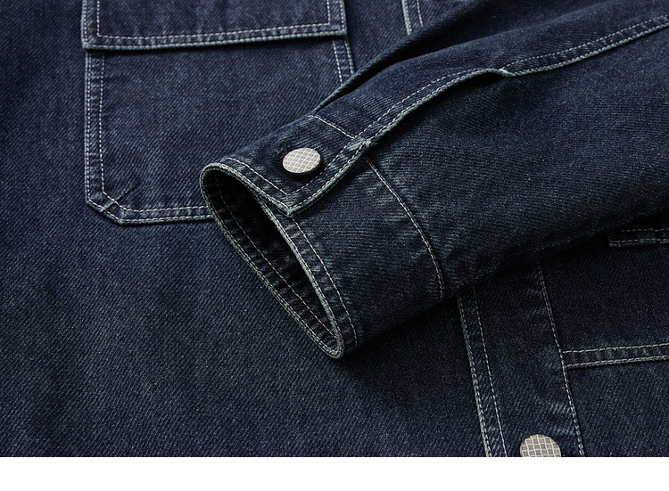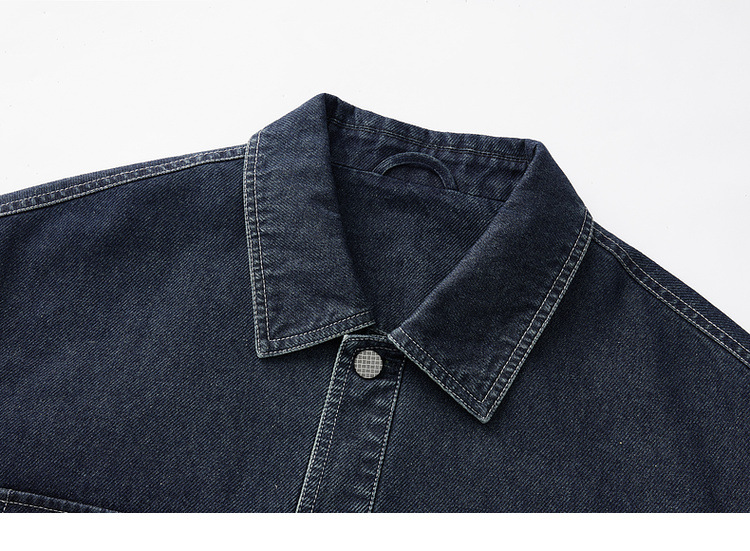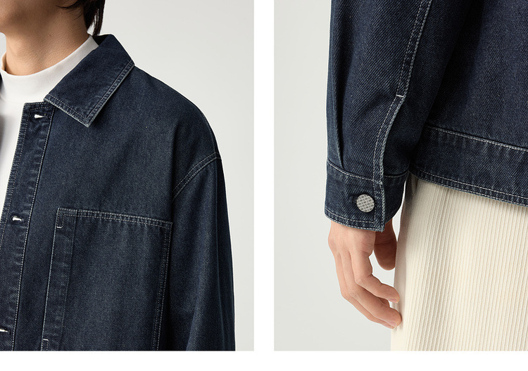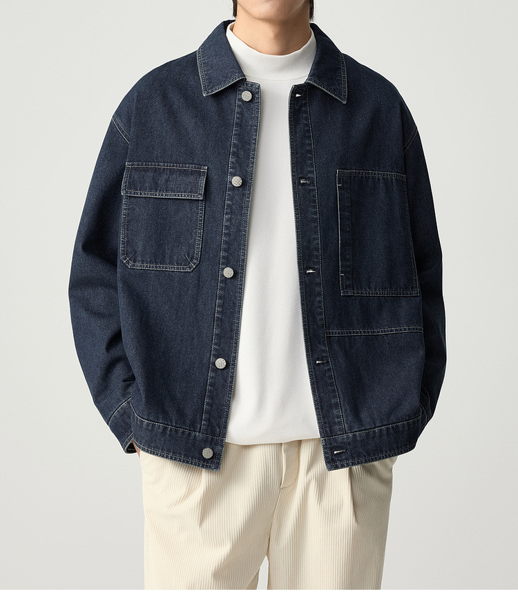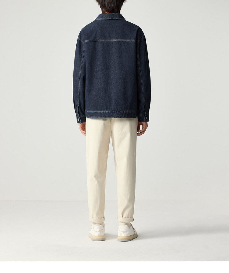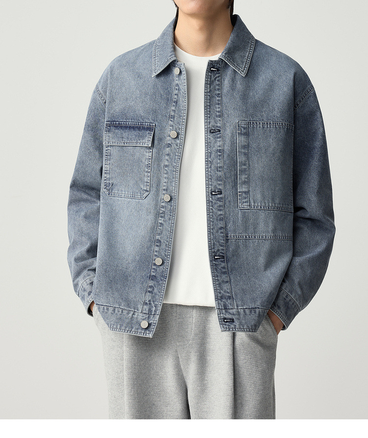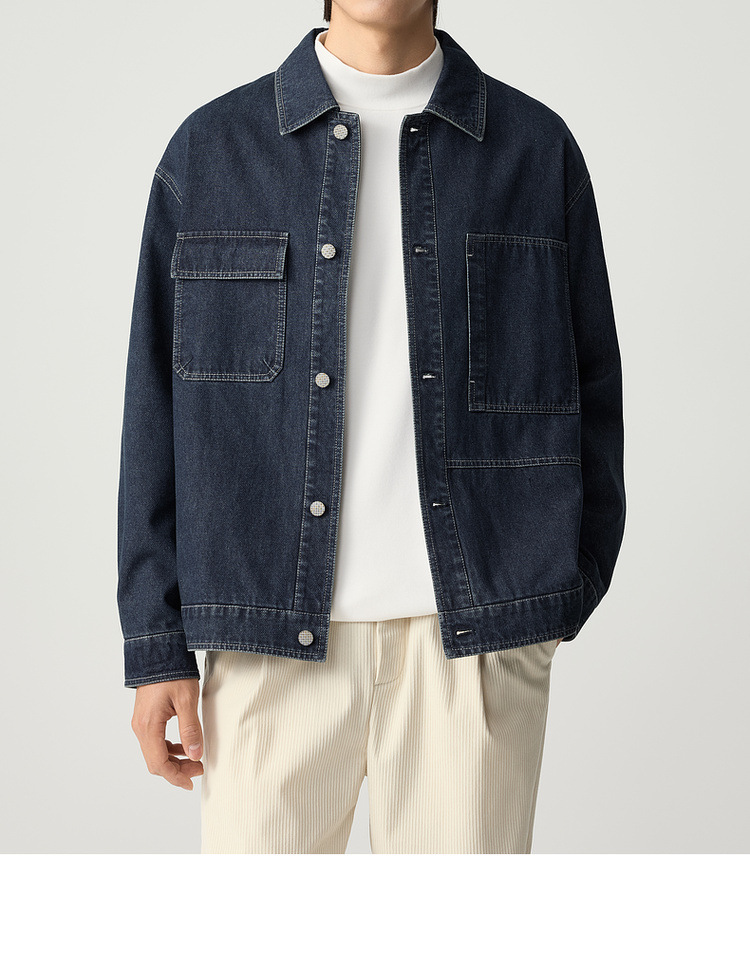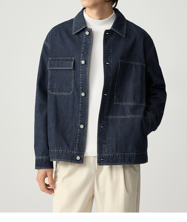 Momaike 심플 탑스티치 데님 재킷 남성 2025 가을 스타일 포켓 장식 라펠 남성 재킷 80855.스토어 가기