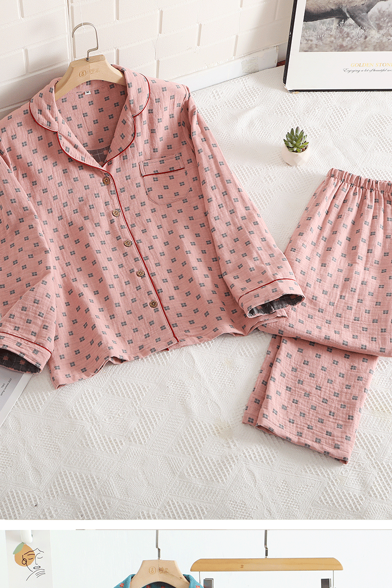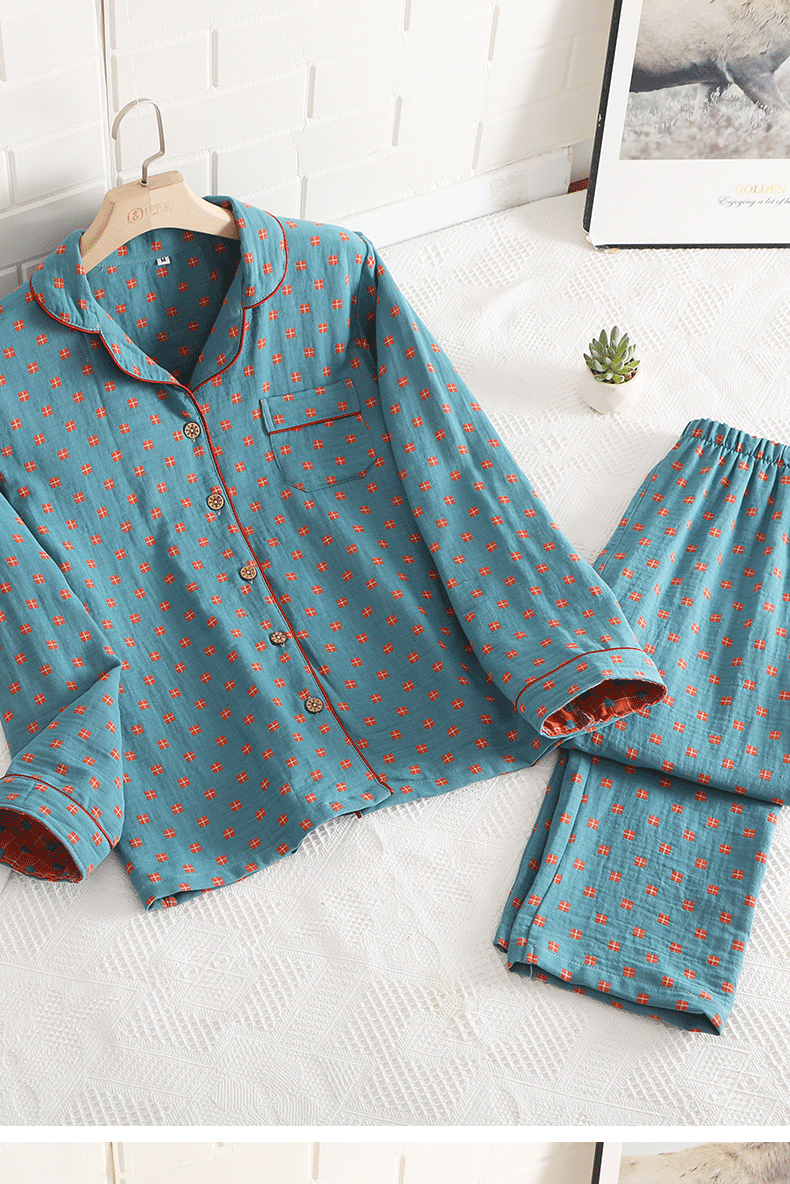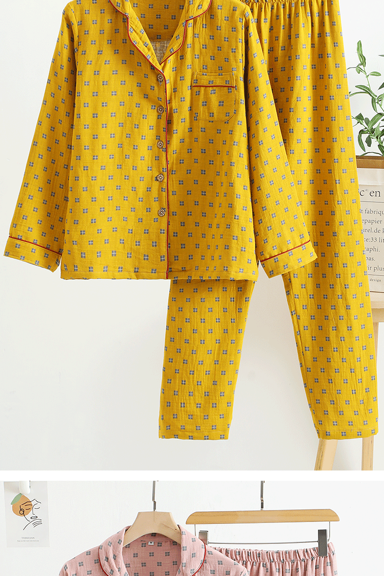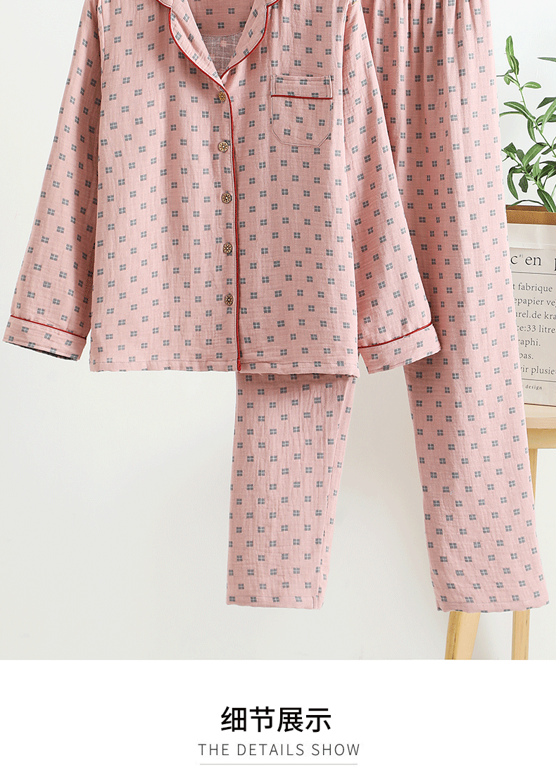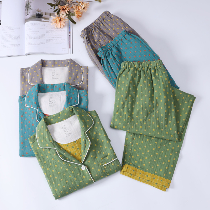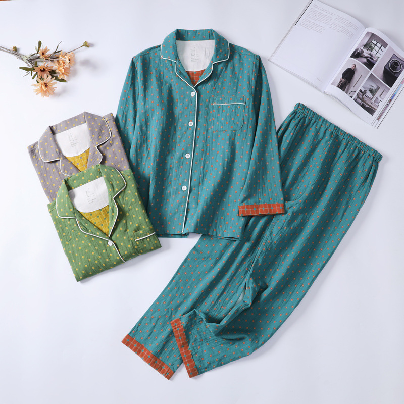새로운 면 더블 레이어 원사 잠옷 가정 의류 여자의 긴팔 바지 면 자카드 통기성 부드러운 가정 의류 세트스토어 가기