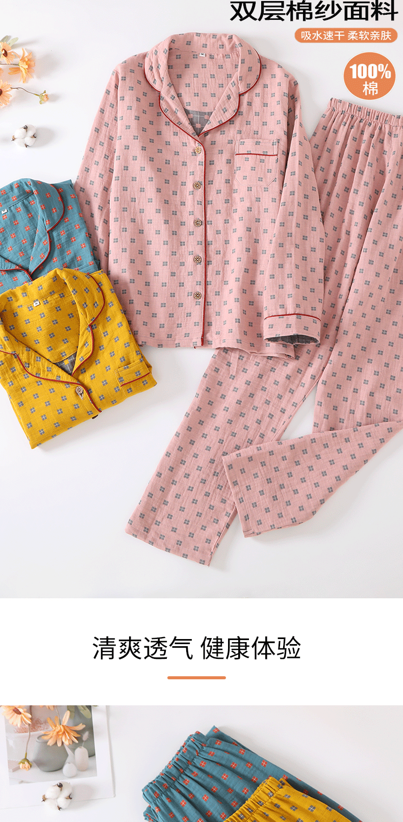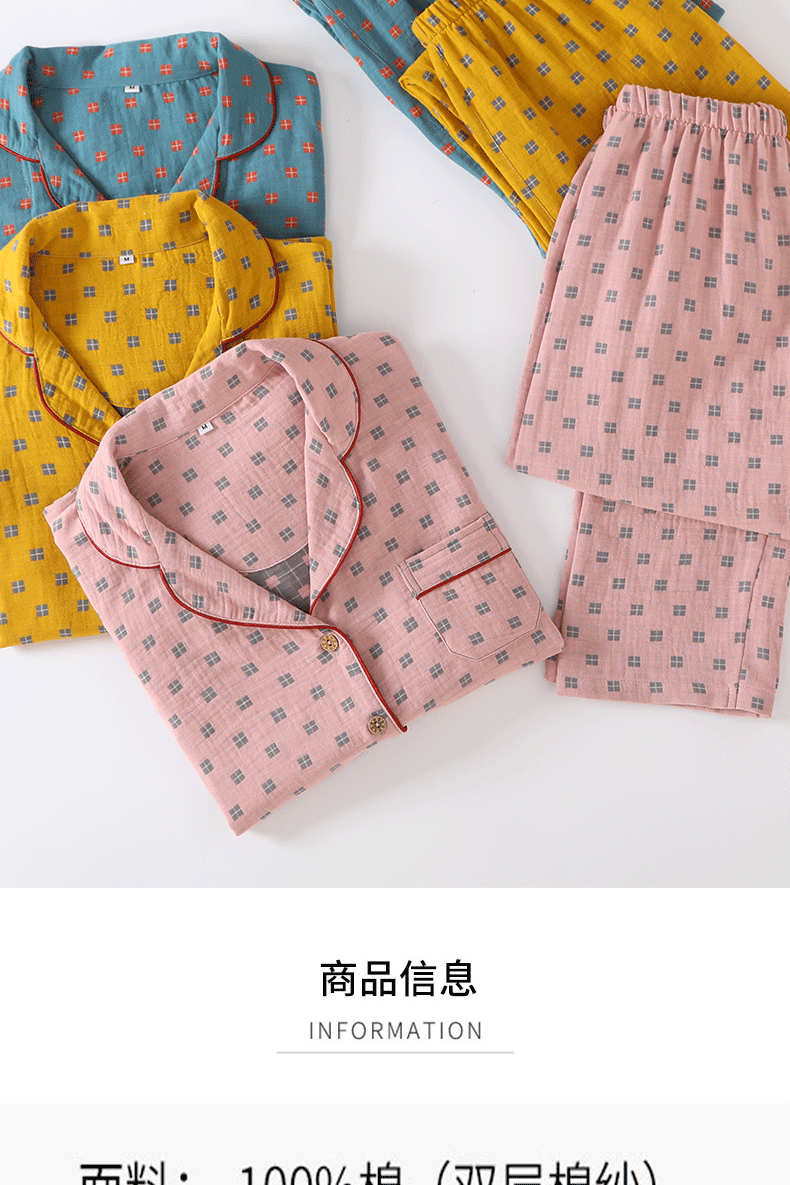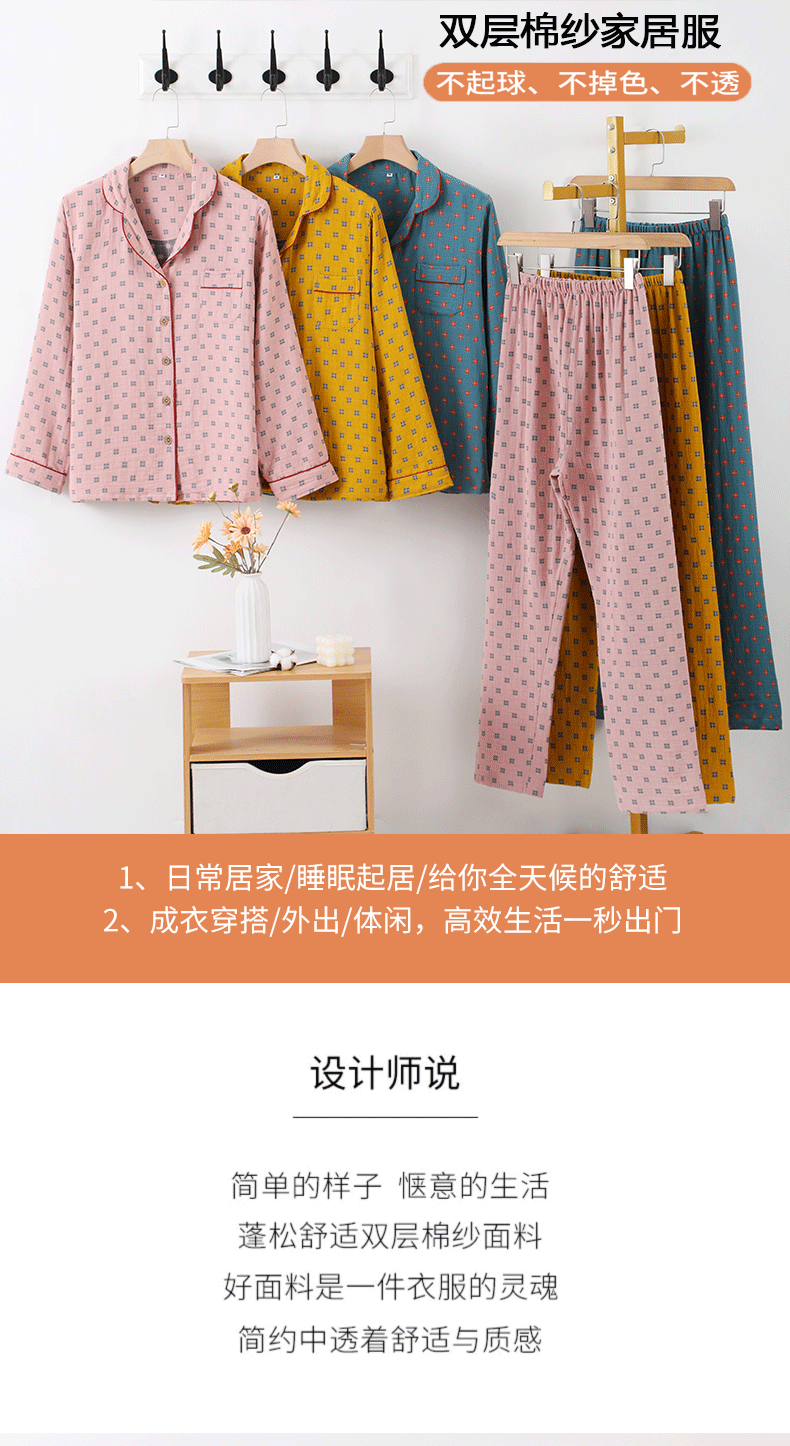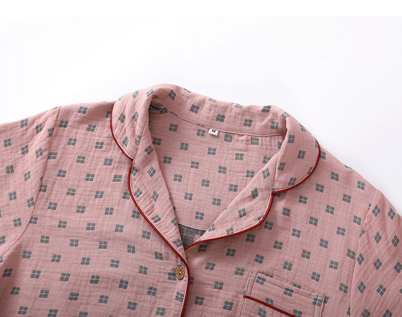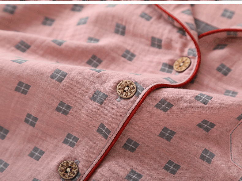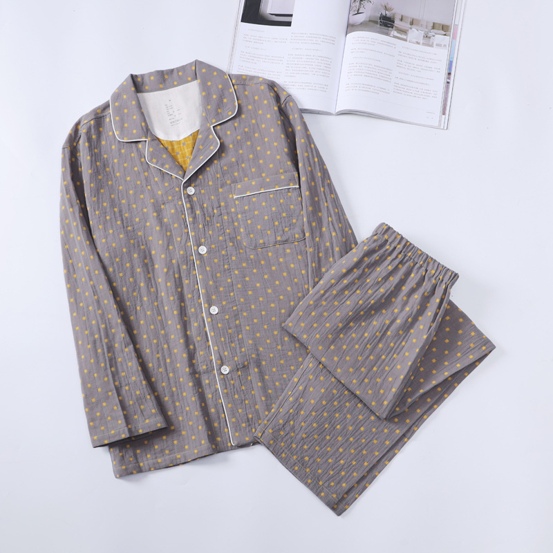 새로운 면 더블 레이어 원사 잠옷 가정 의류 여자의 긴팔 바지 면 자카드 통기성 부드러운 가정 의류 세트스토어 가기