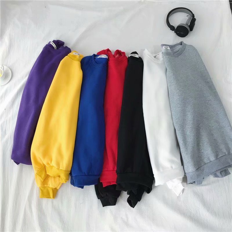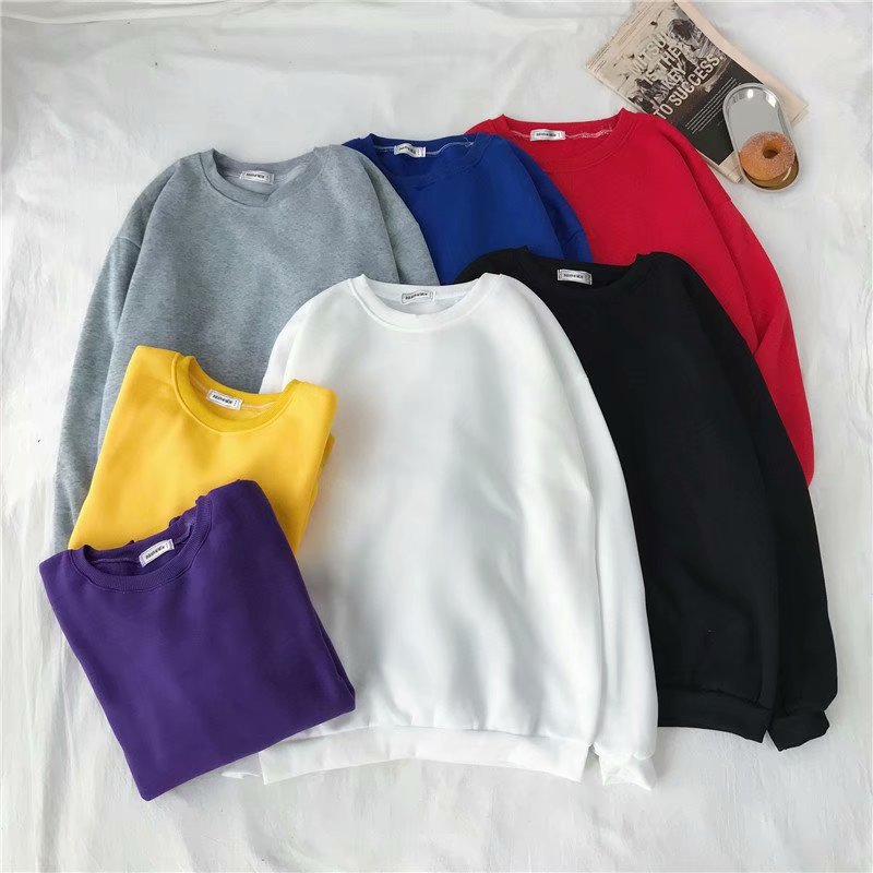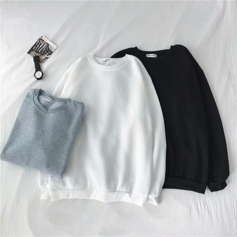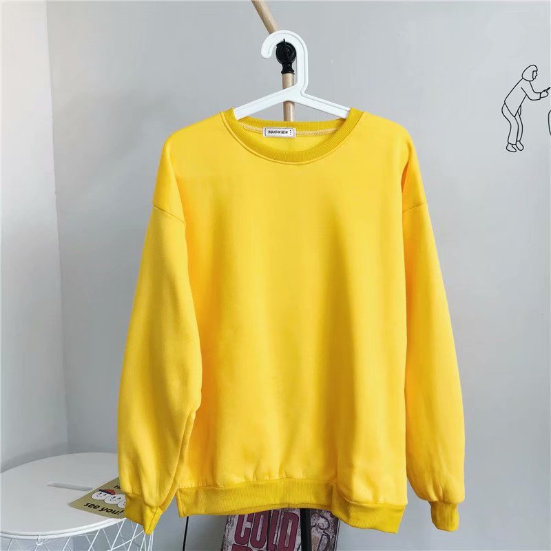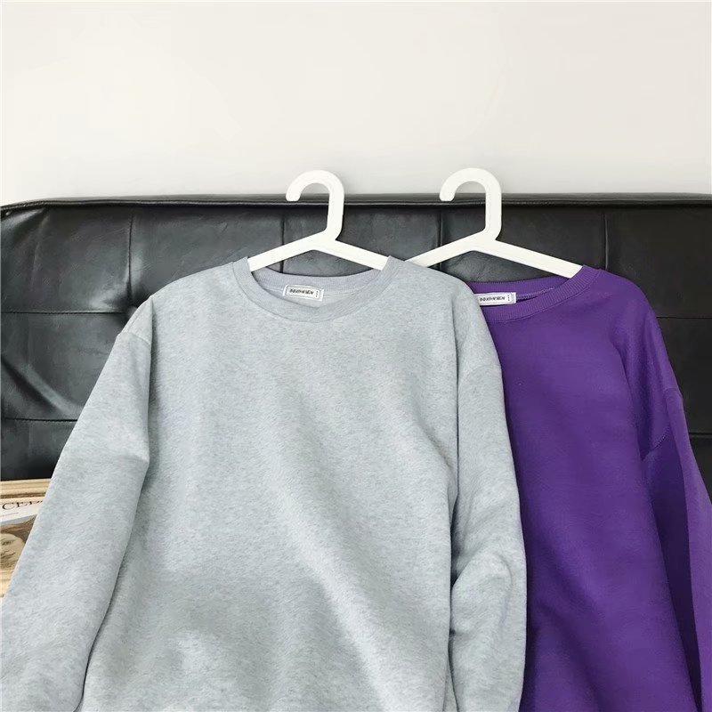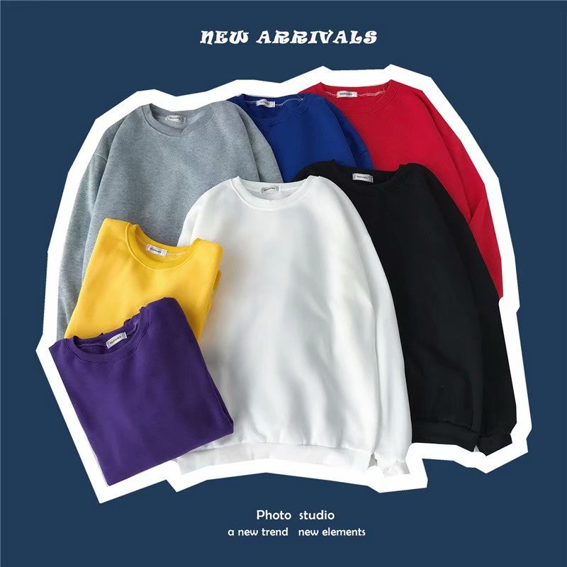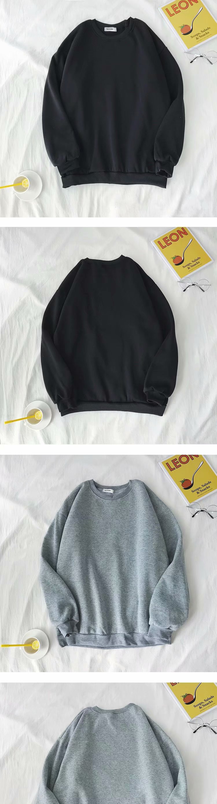 단색 기모 스웨터 남자의 2022 가을/겨울 새로운 느슨한 긴팔 라운드 넥 내부 착용 겉옷 연인 캐주얼 탑스토어 가기