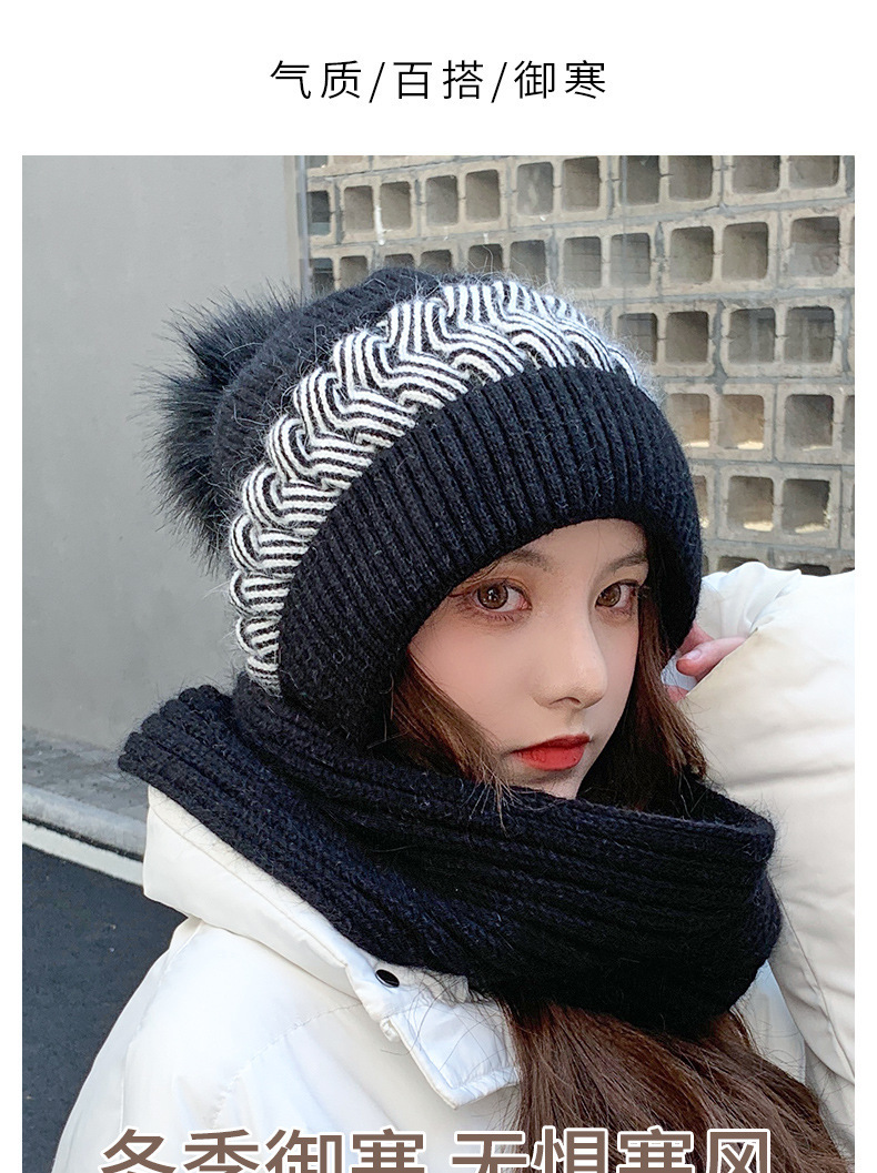 保暖帽 针织帽 帽子女冬 套头帽 护耳帽 帽子围巾一体