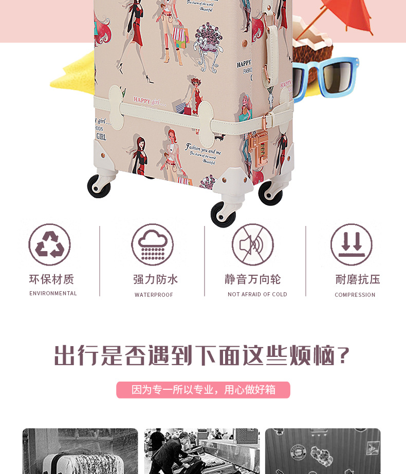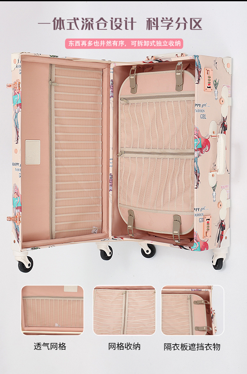 여성용 PU 가죽 여행 가방, 고급스러운 디자인의 트롤리 가방, 대용량 레트로 패션 여성용 여행 가방, 화장품 가방 도매스토어 가기