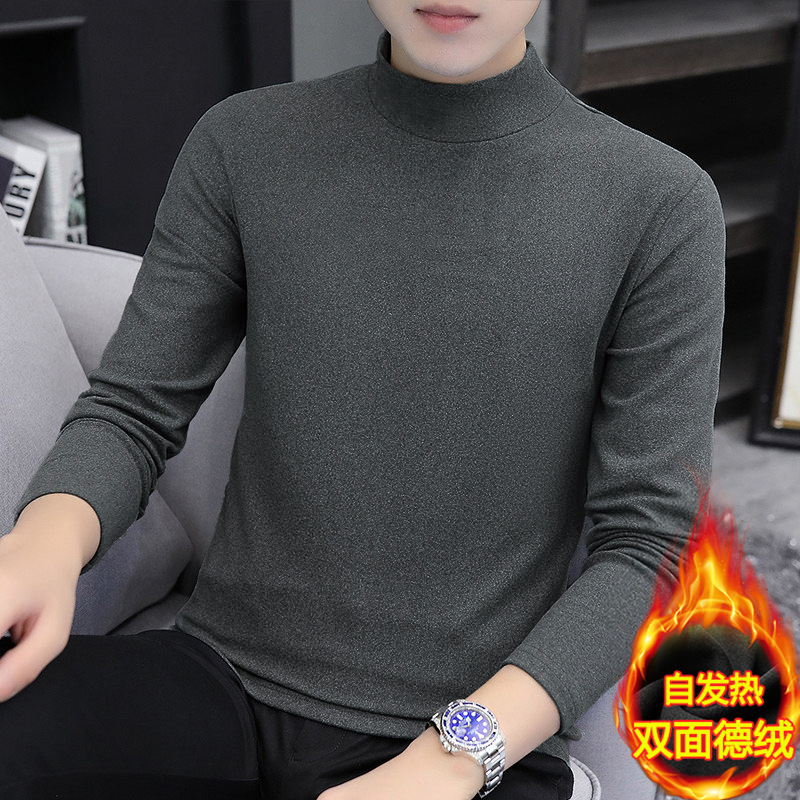 양면 벨벳베이스 셔츠 남성용 반 터틀넥 가을/겨울 기모 긴팔 티셔츠 남성용 따뜻한 탑스토어 가기