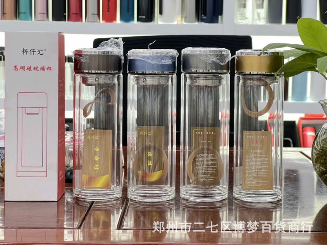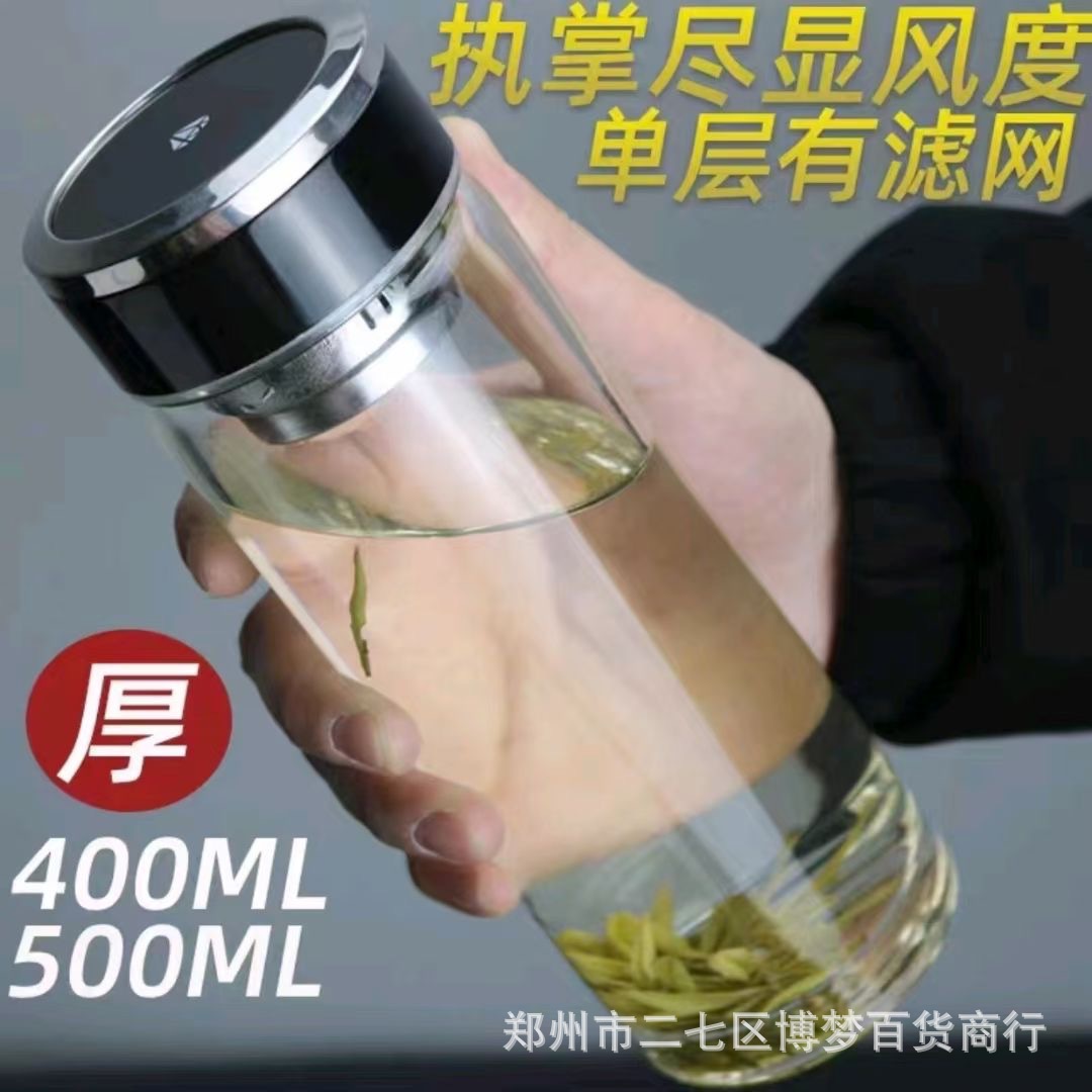 남성용 스트레이너가 두꺼운 휴대용 가정용 물컵이있는 비엔티안 유리 더블 레이어 대용량 고온 저항 사무실 찻잔스토어 가기