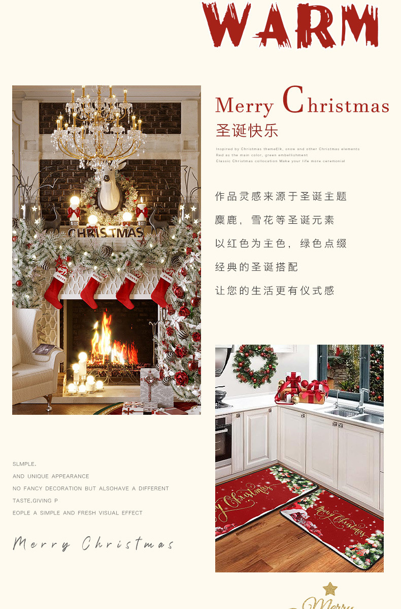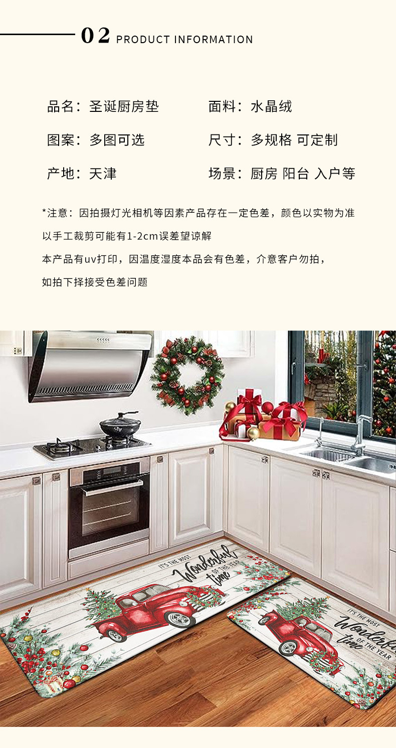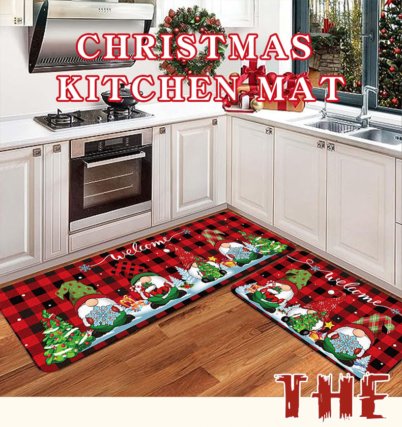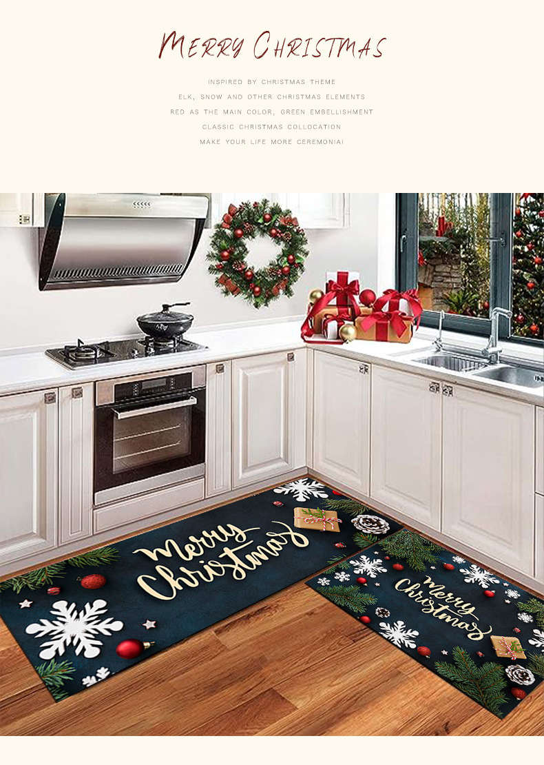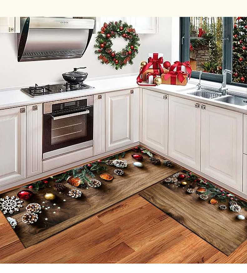 크로스 보더 크리스마스 주방 매트 2 피스 주방 카펫 축제 크리스마스 장식 문 바닥 매트 홈 매트스토어 가기
