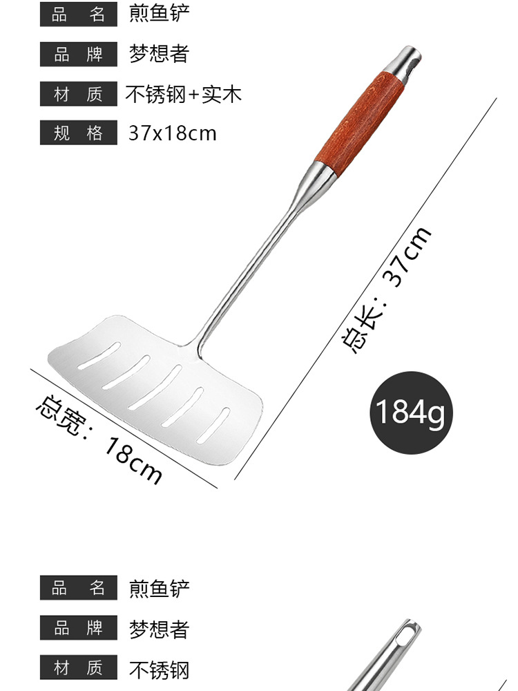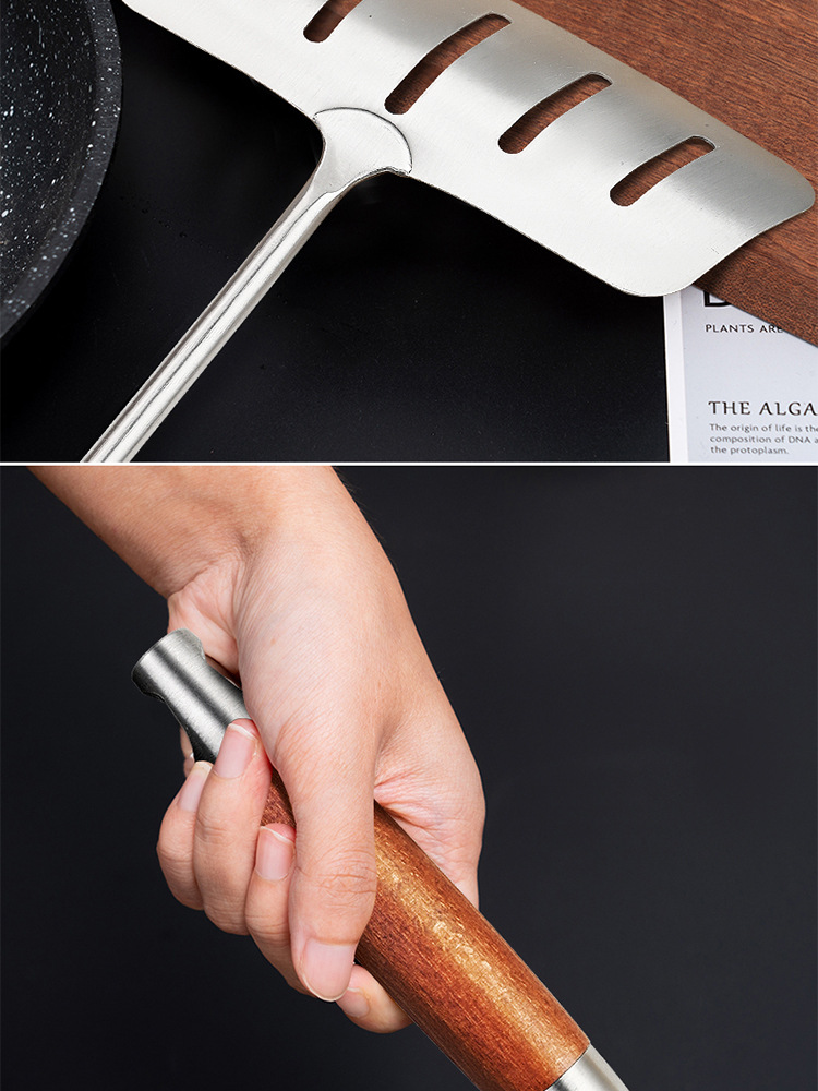 • 스테인리스 스틸 나무 손잡이 생선 뒤집개