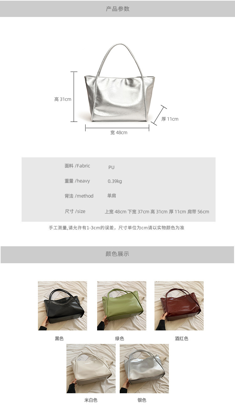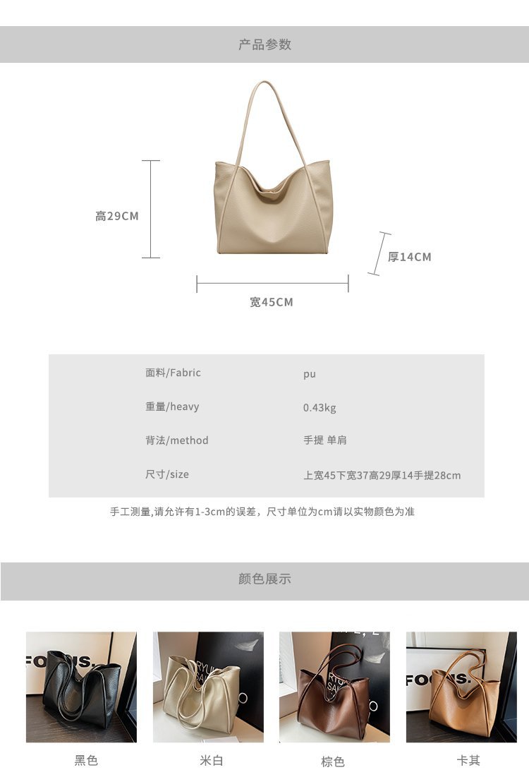 2024 여름 새로운 솔리드 컬러 올 매치 대용량 어깨 가방 토트 백 하이 엔드 리치 패턴 야채 가방 여성용 가방스토어 가기