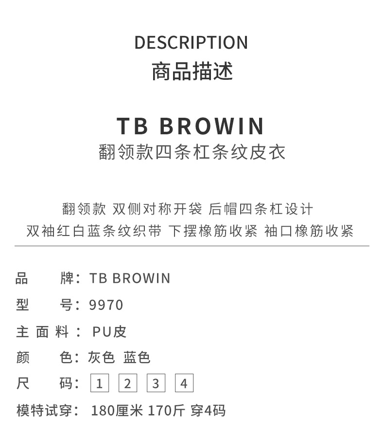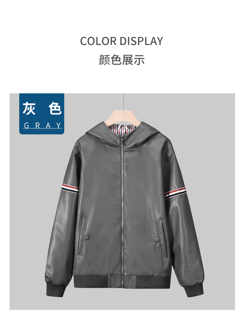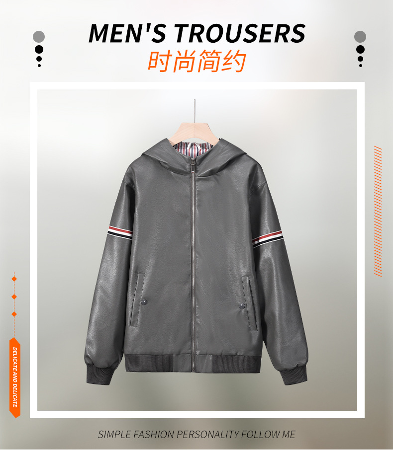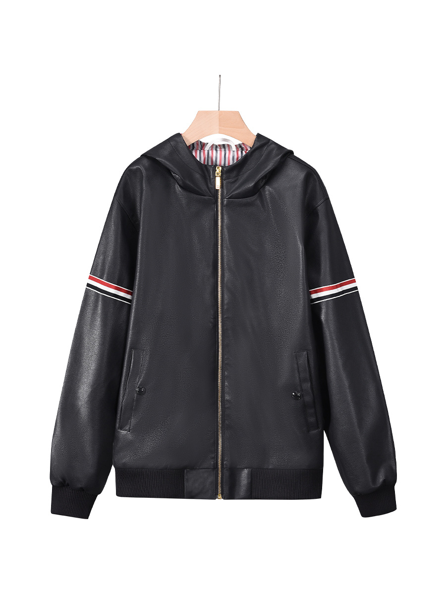TB BROWIN 신형 가죽 남성 후드 PU 가죽 코트 레드 화이트 블루 스트라이프 가죽 스트리트 패션 재킷스토어 가기
