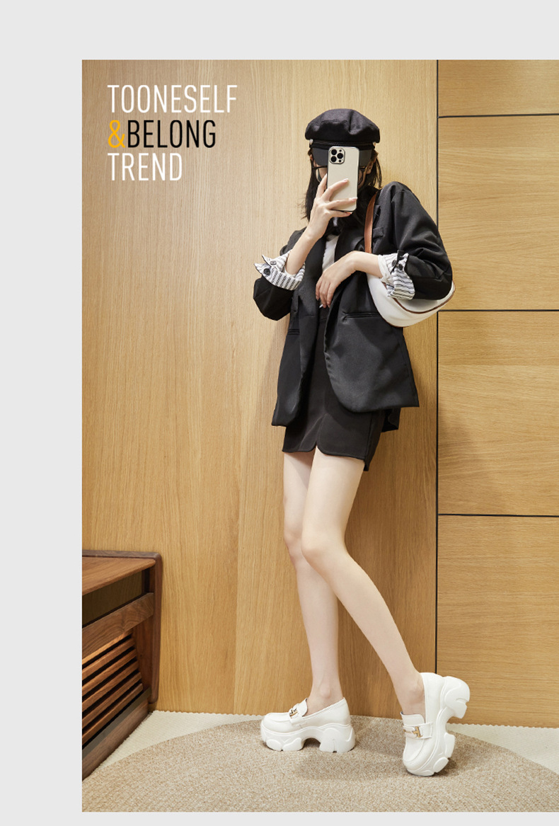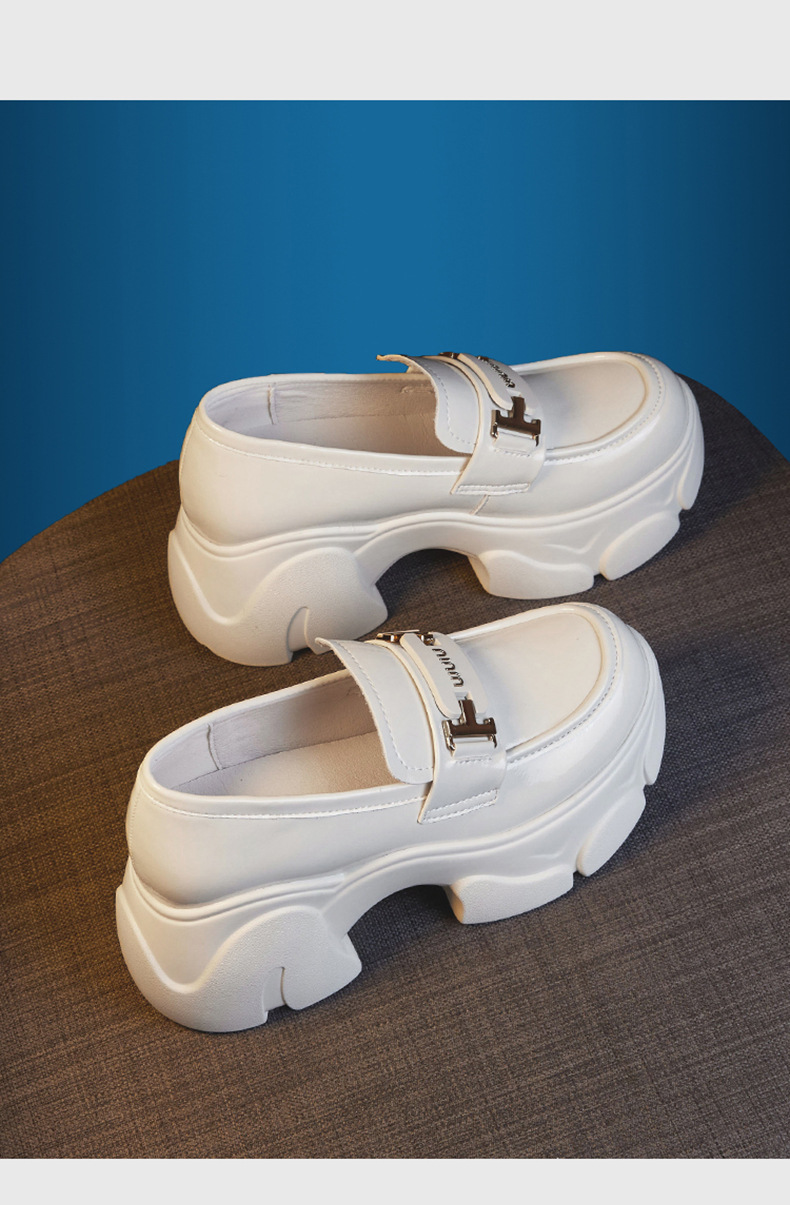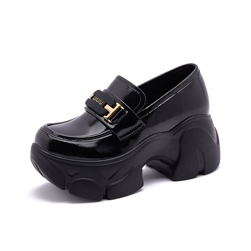 여성을 위한 영국 로퍼, 봄 2025 새로운 스타일의 블랙 두꺼운 밑창 작은 가죽 신발, 여성의 키를 높이는 다용도 슬립온 신발